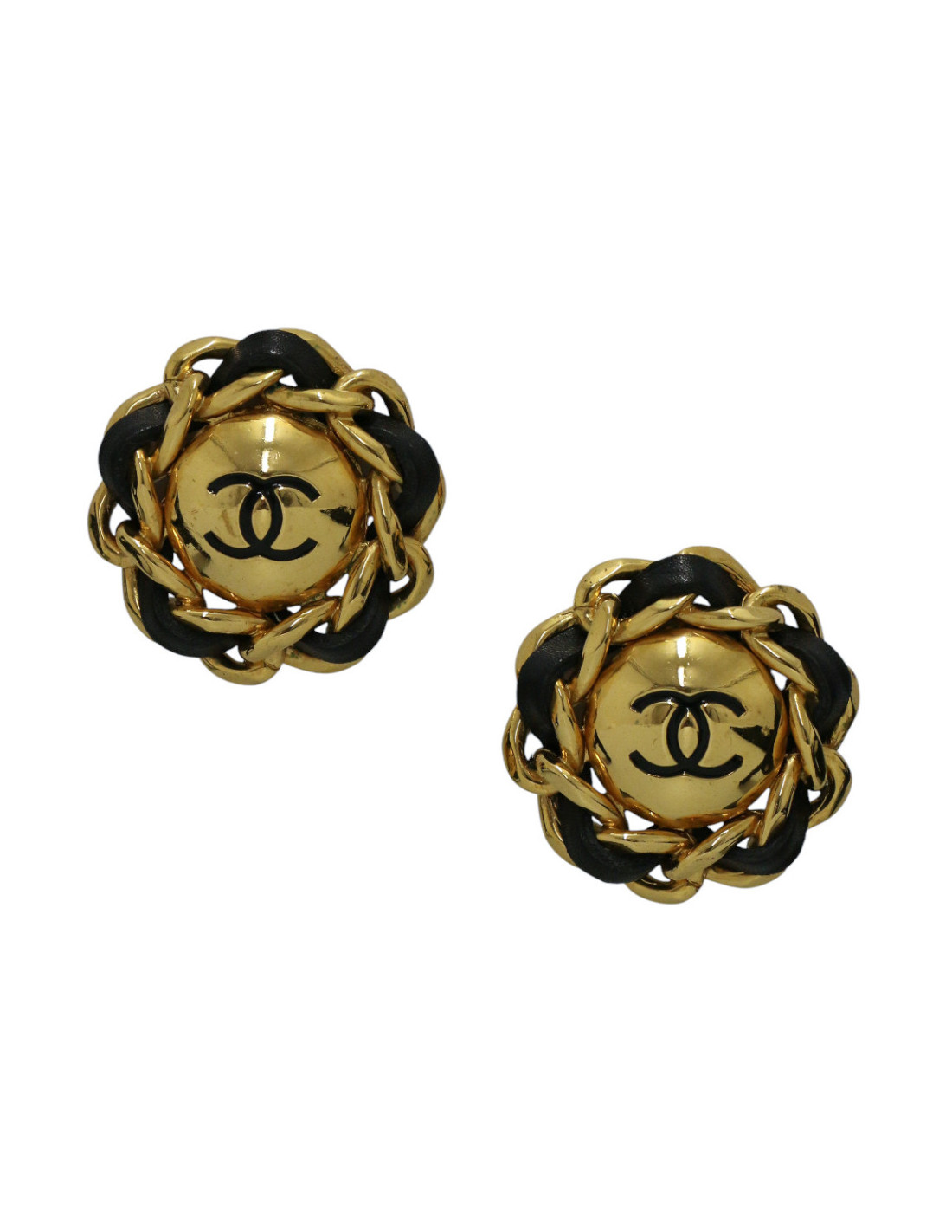 Boucles d'oreille Chanel tressées cuir et métalCondition : très bon état