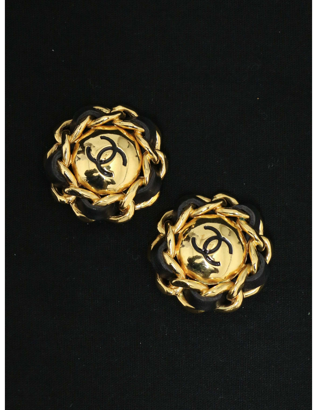 Détails : magnifique clips vintage. CC noir au centre et cuir et métal tressé.
