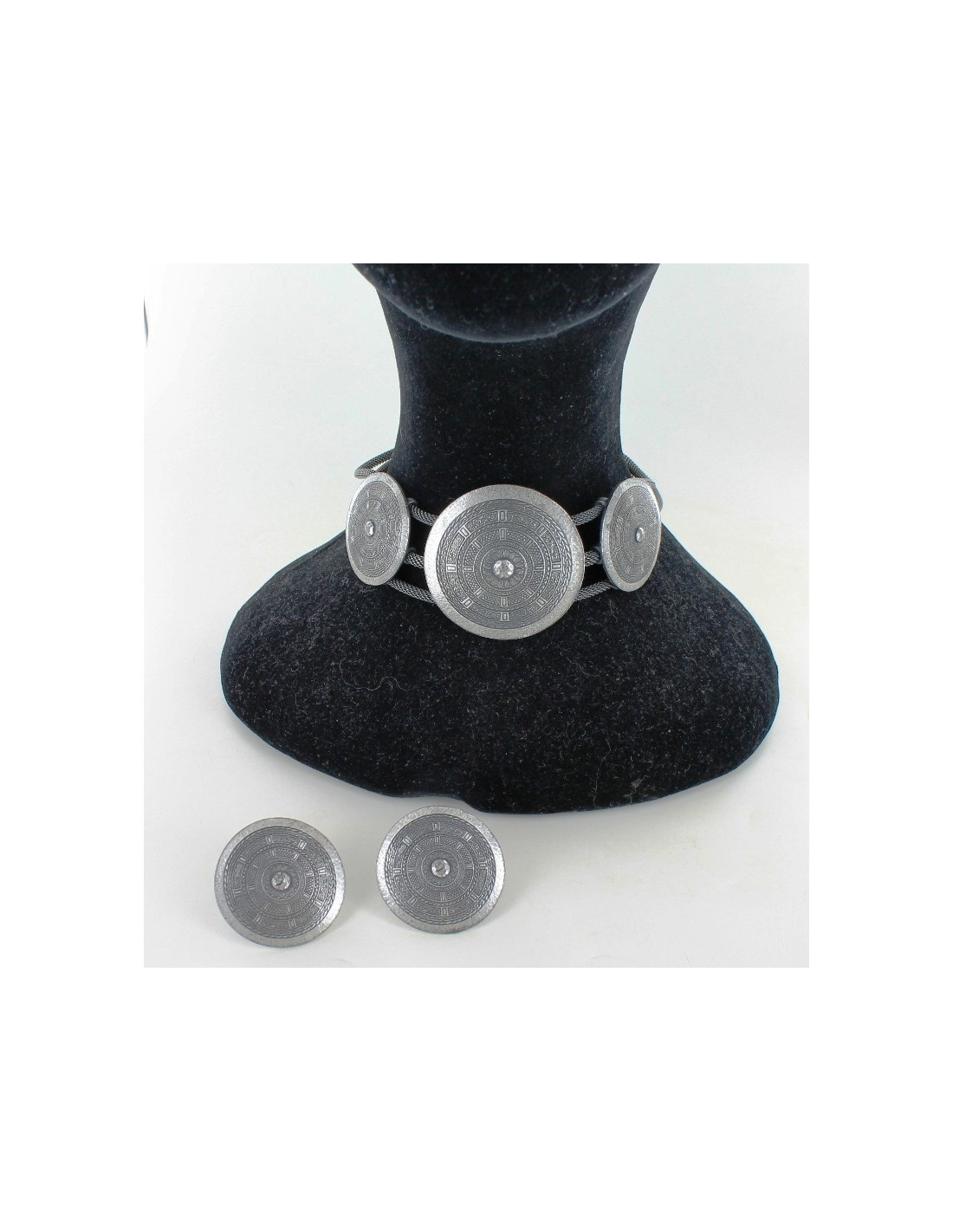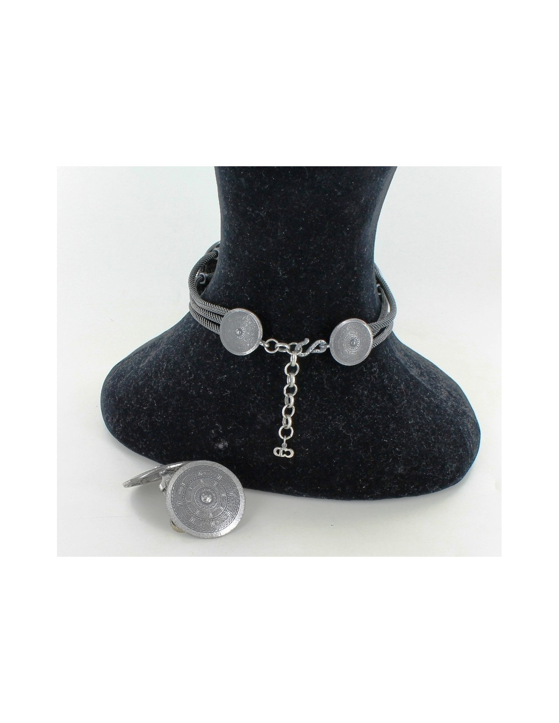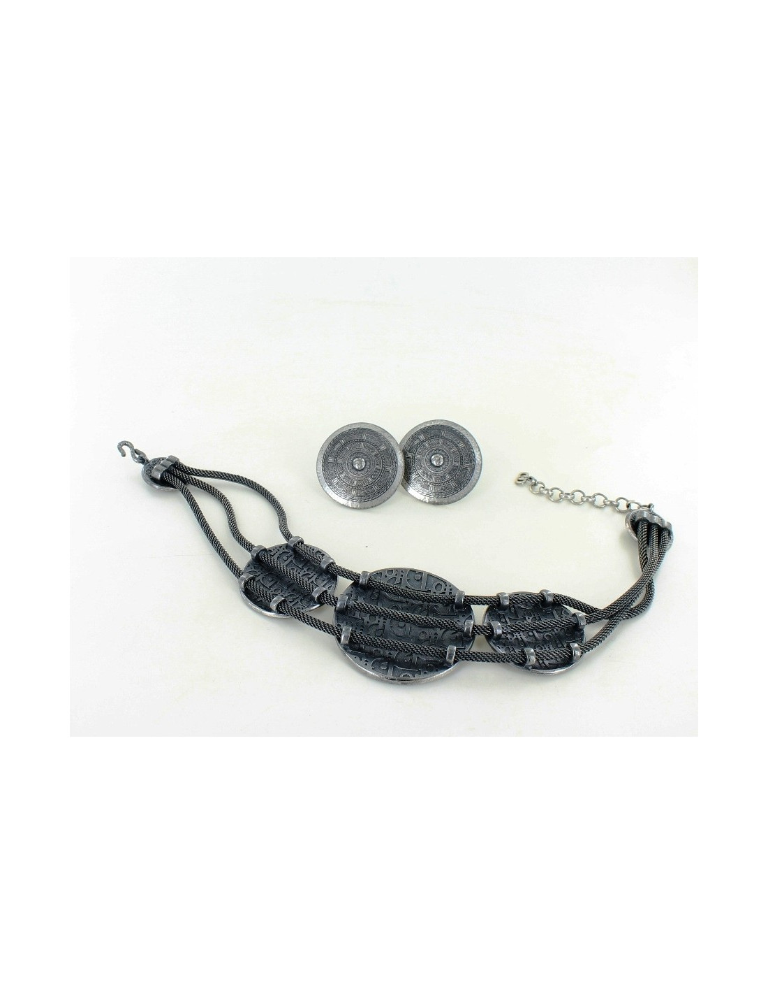 Parure Dior, en métal argent vieilli, collier ras de cou et clips d'oreille.