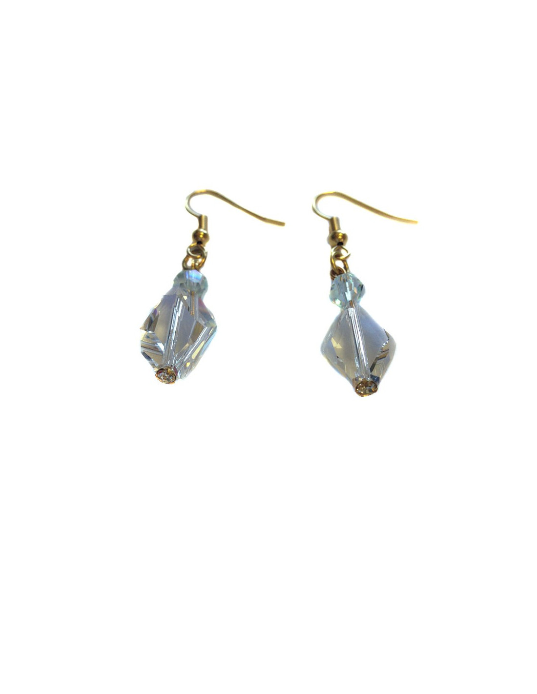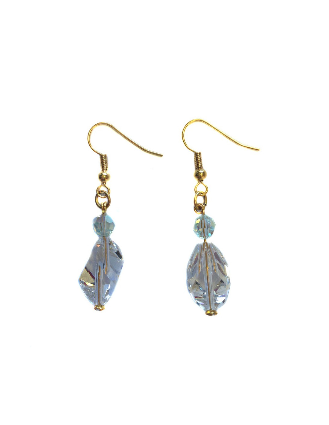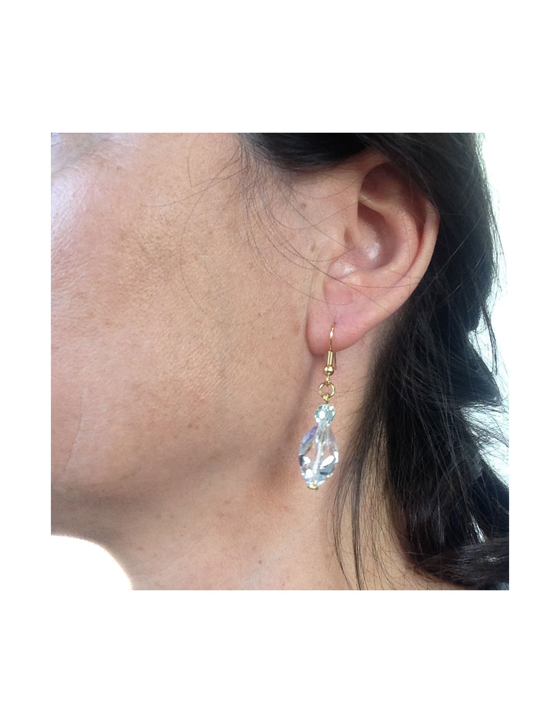 Belle paire de clous d'oreille Marguerite de Valois en cristal de roche avec reflets bleu pâle et métal doré à l'or fin.