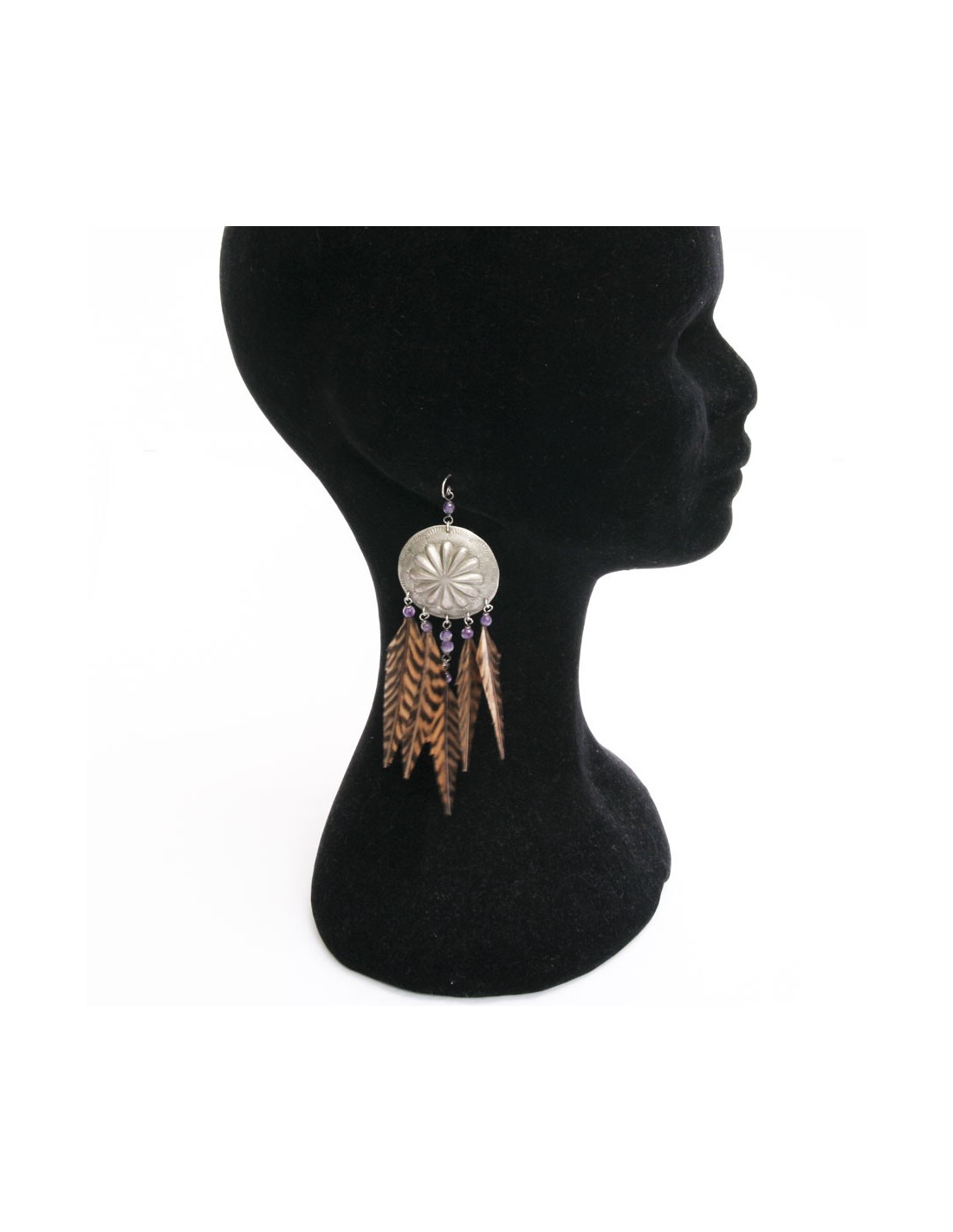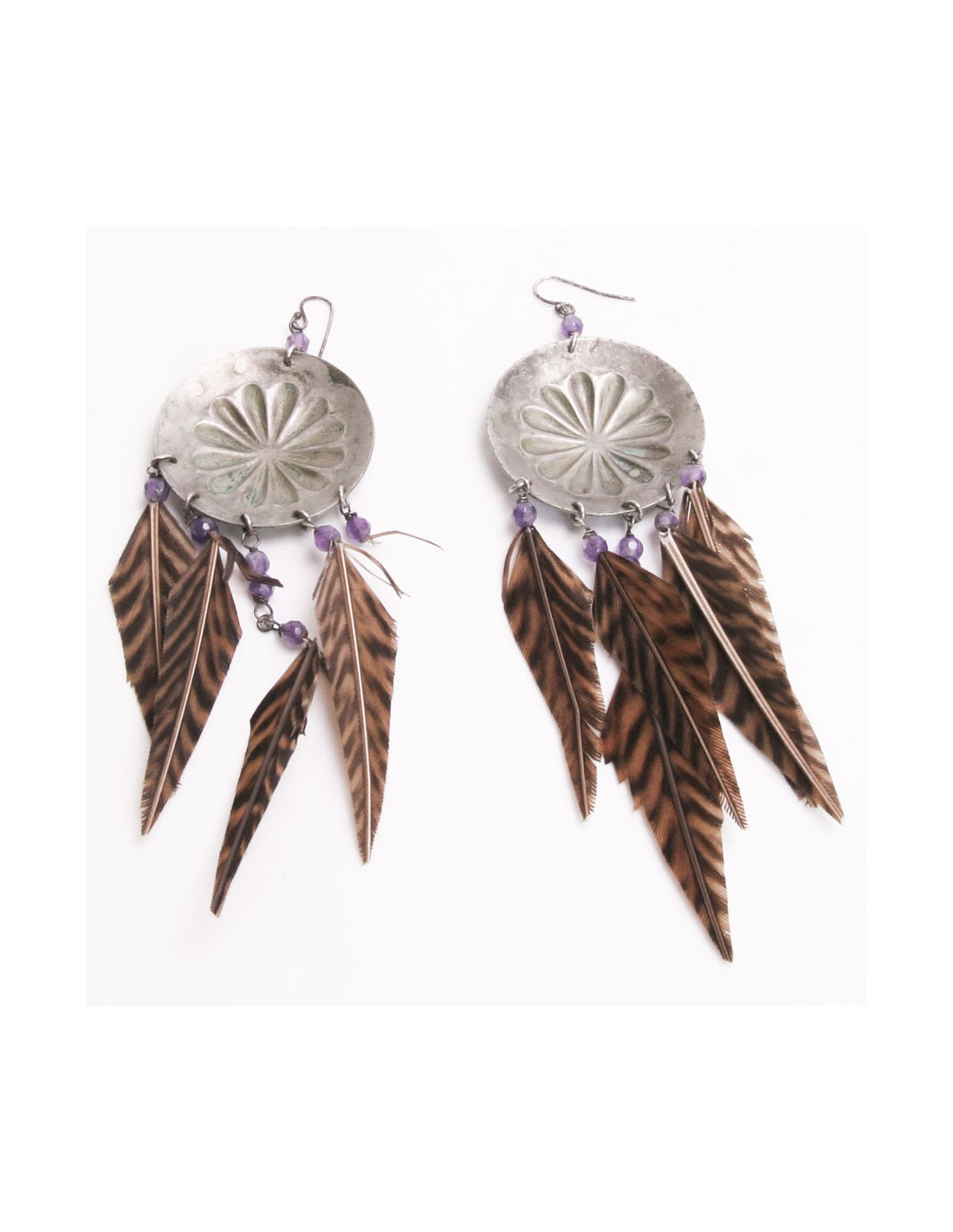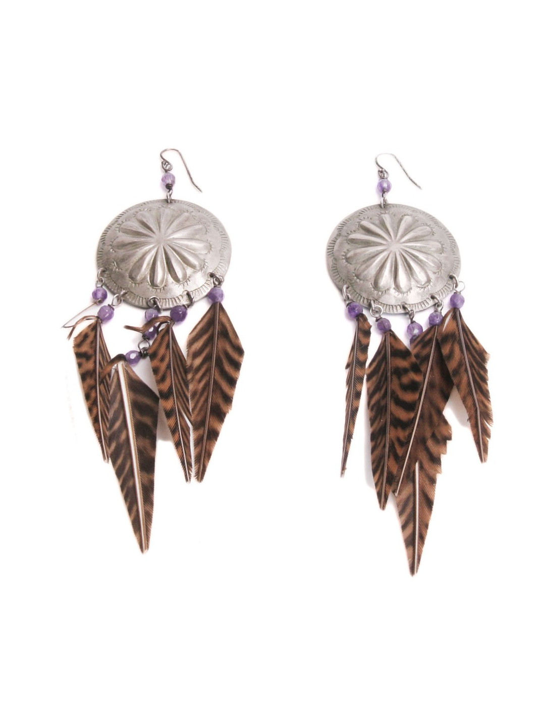 Clous d'oreilles RALPH LAUREN plumes marron