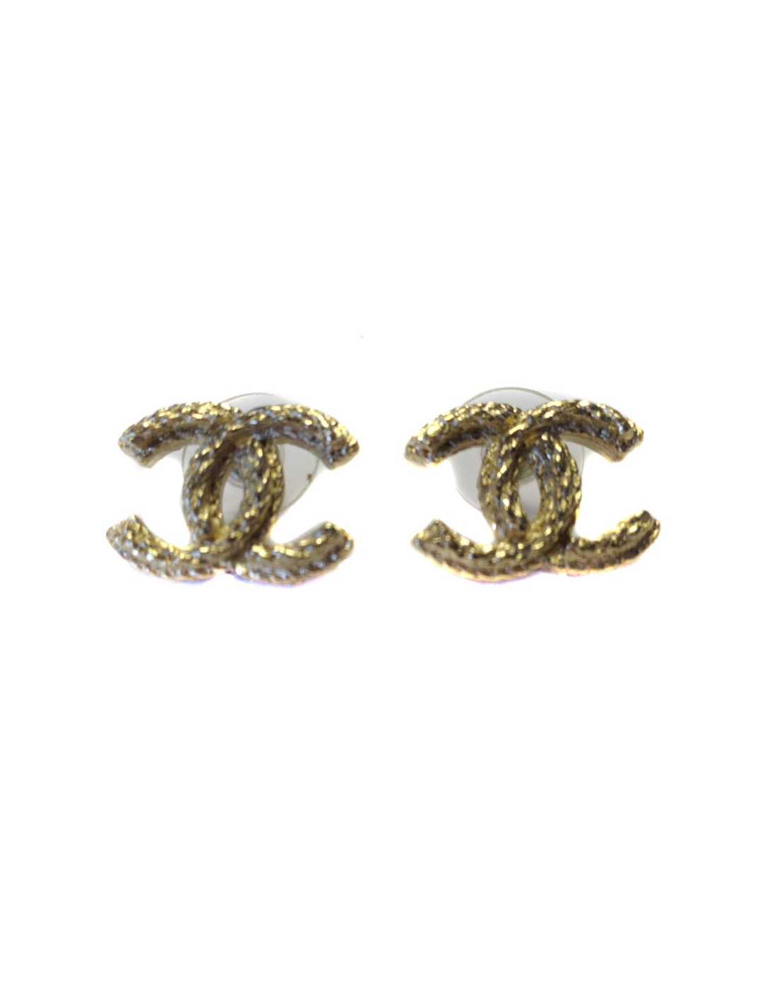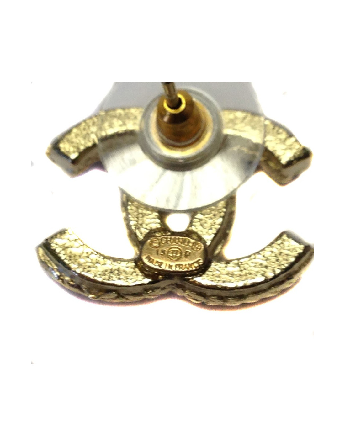 Boucles d'oreille clous CHANEL fleurettes en métal doré et résine beige