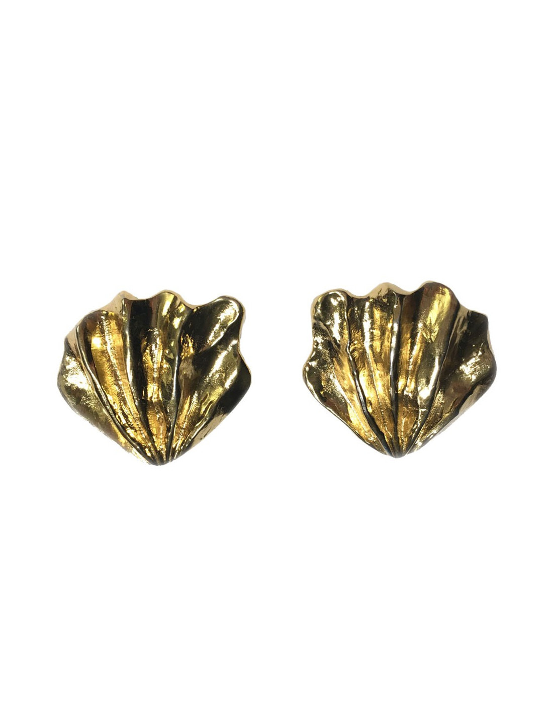 Boucles d'oreille clips YVES SAINT LAURENT en métal doré. Clips vintage. Effet drapé. En très bon état. Hologramme de la marque au dos.