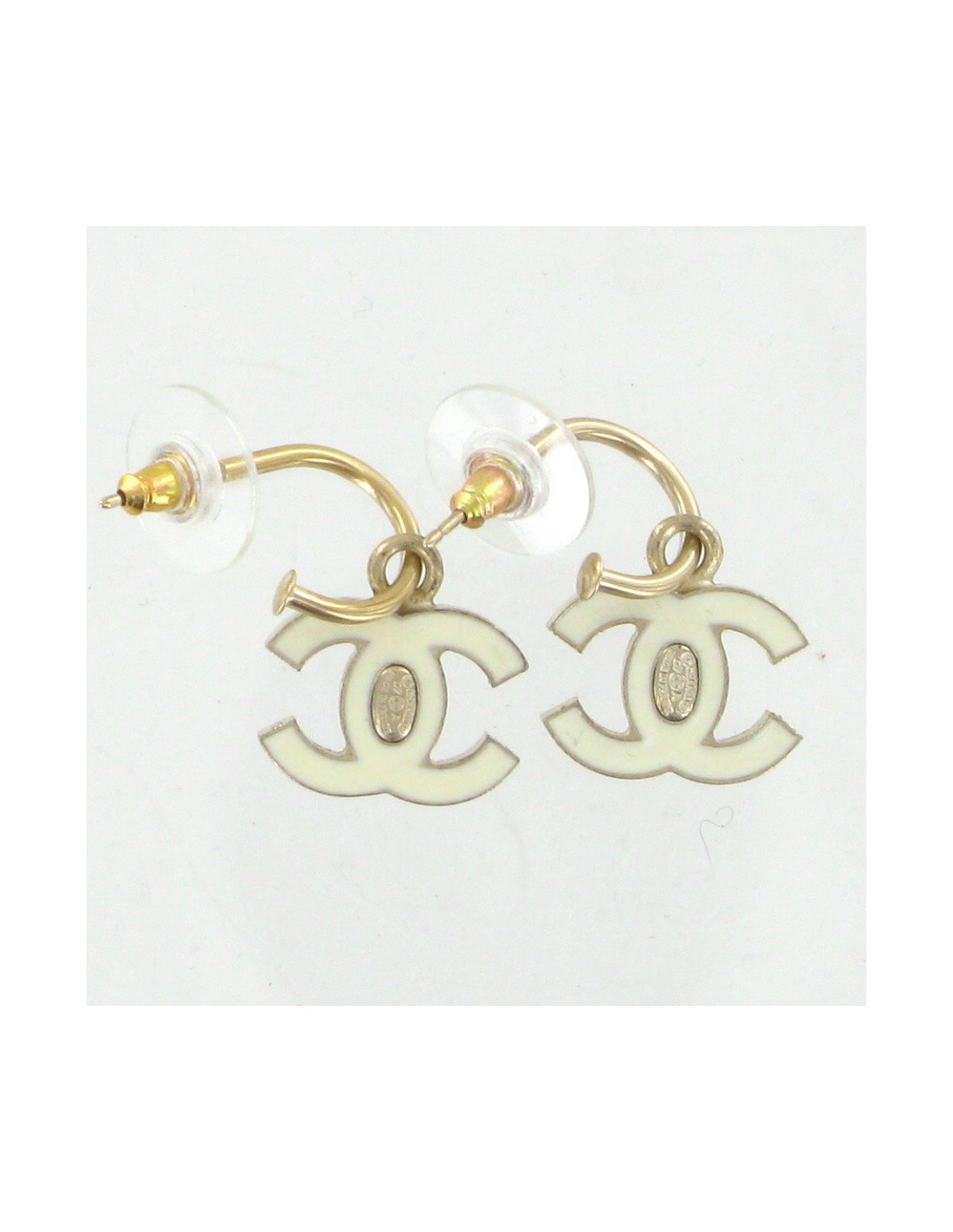 Clous d'oreille créoles CHANEL "CC" émail écru