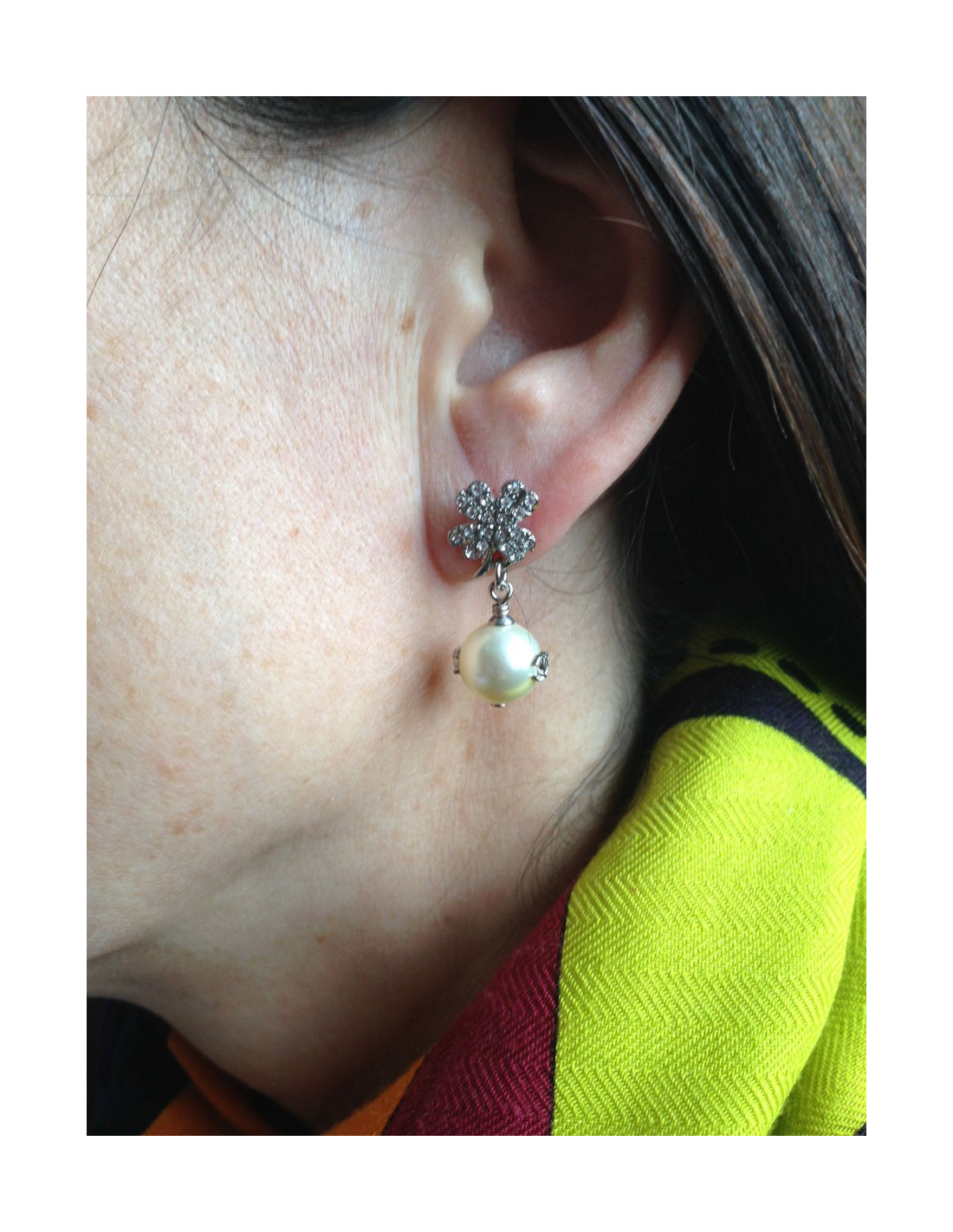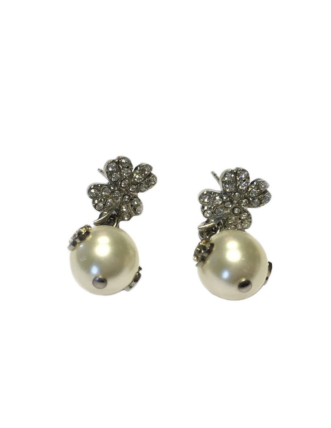 Pour VDBoucles d'oreille clous CHANEL trèfle strass et perle nacrée