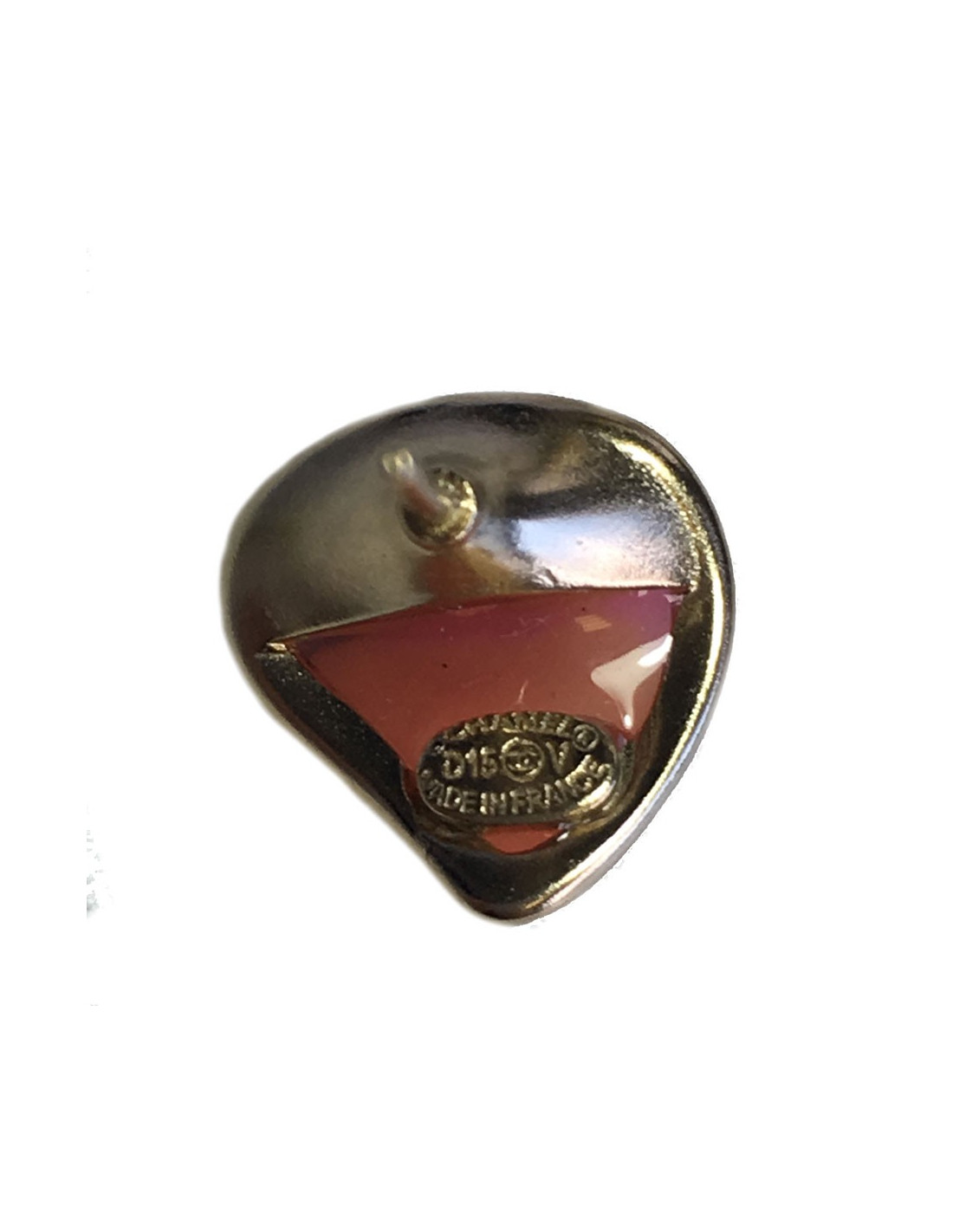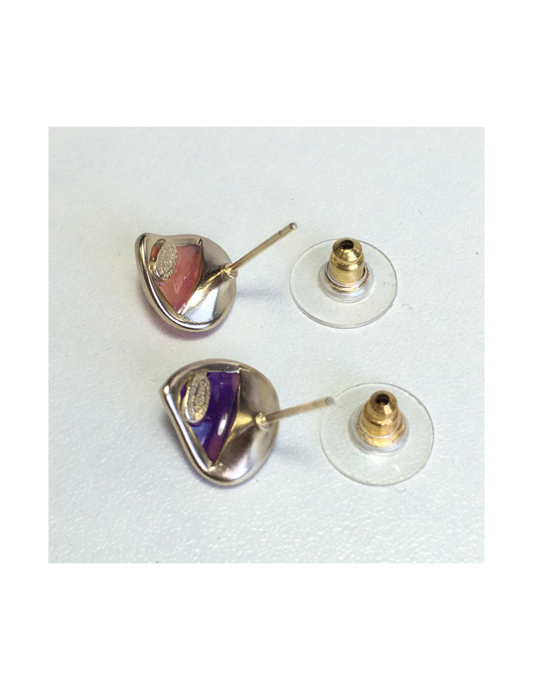 Belle paire de boucles d'oreille clous CHANEL en métal doré et résine multicolore. Petit CC doré au centre de la boucle.