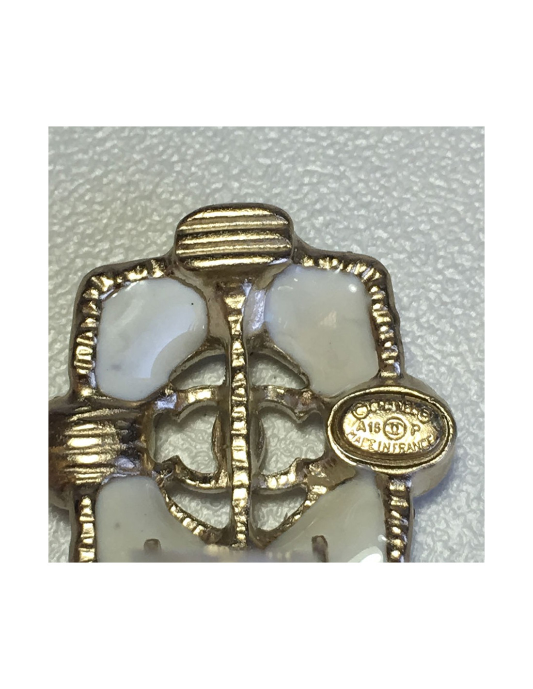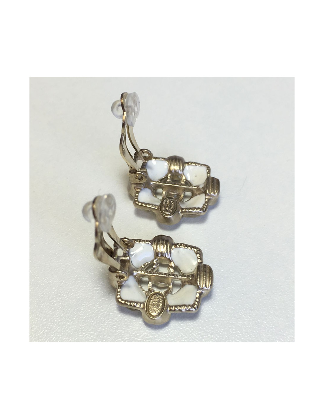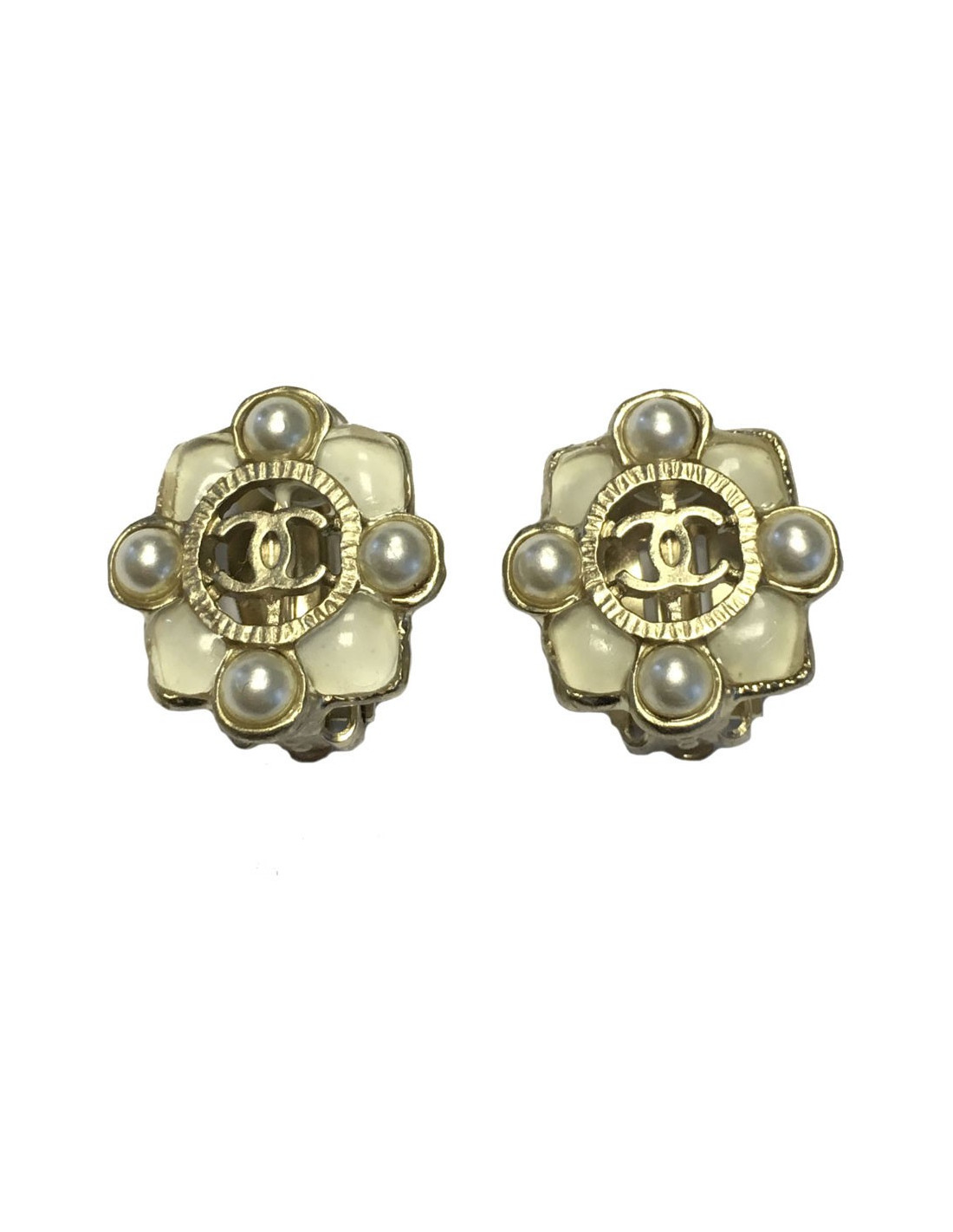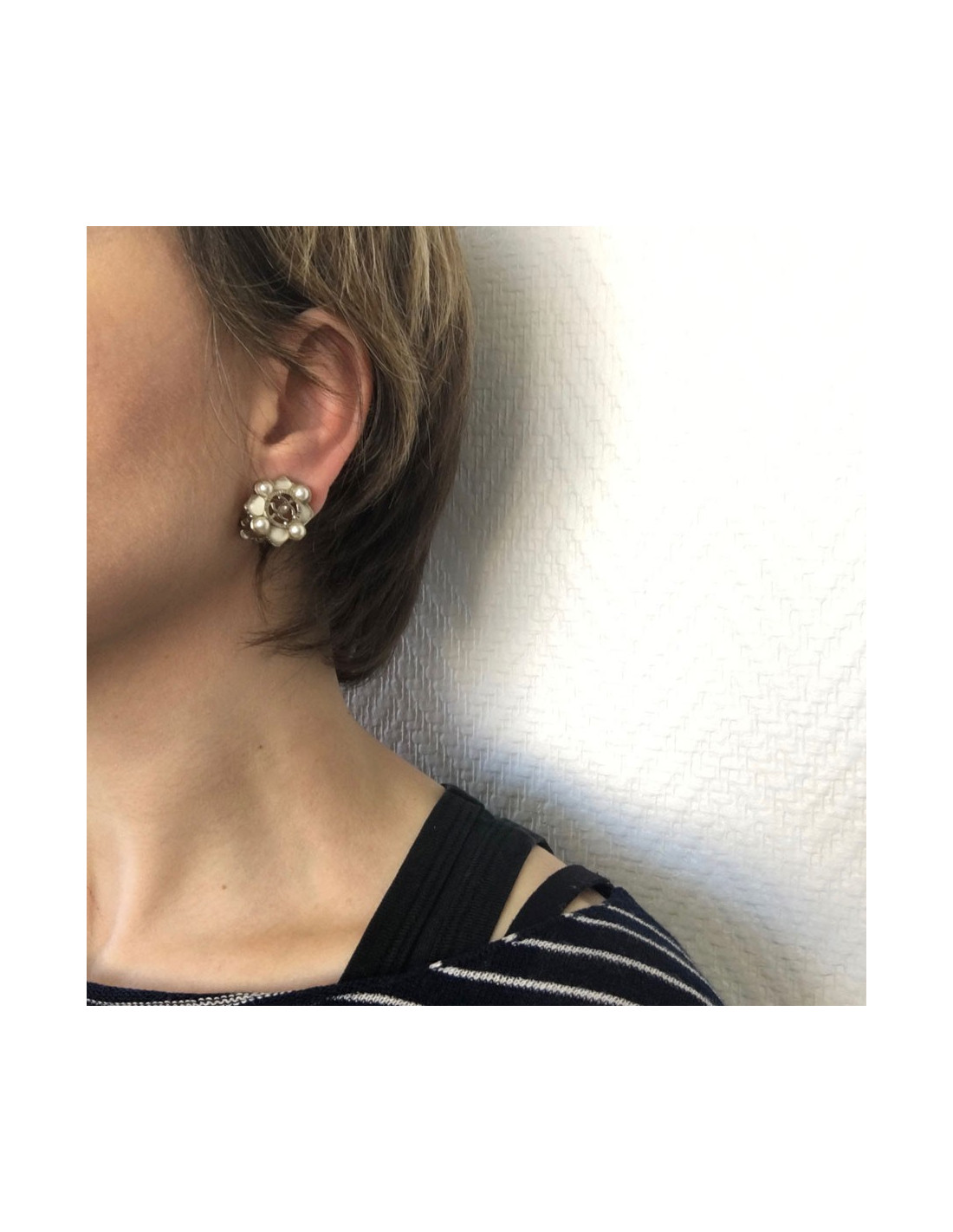 Boucles d'oreille clips CHANEL résine ivoire et perle