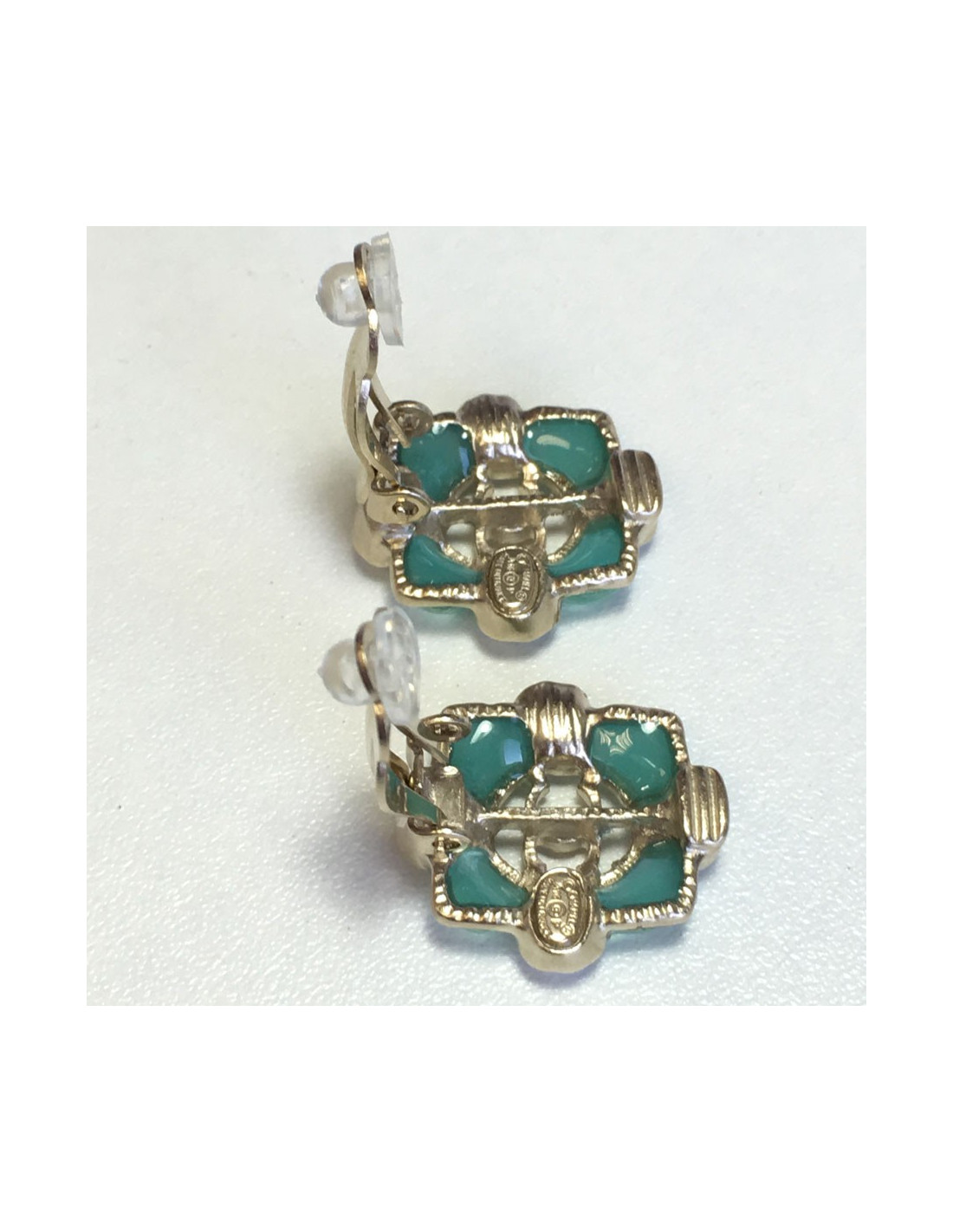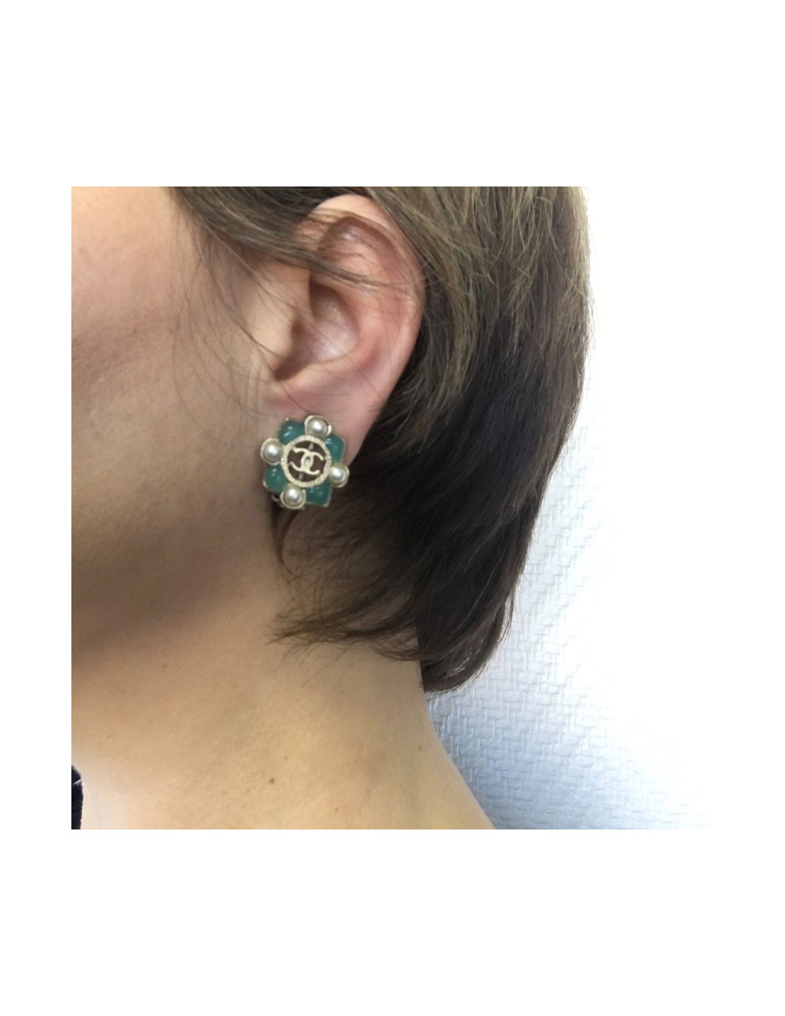Boucles d’oreille clips CHANEL en pate de verre verte