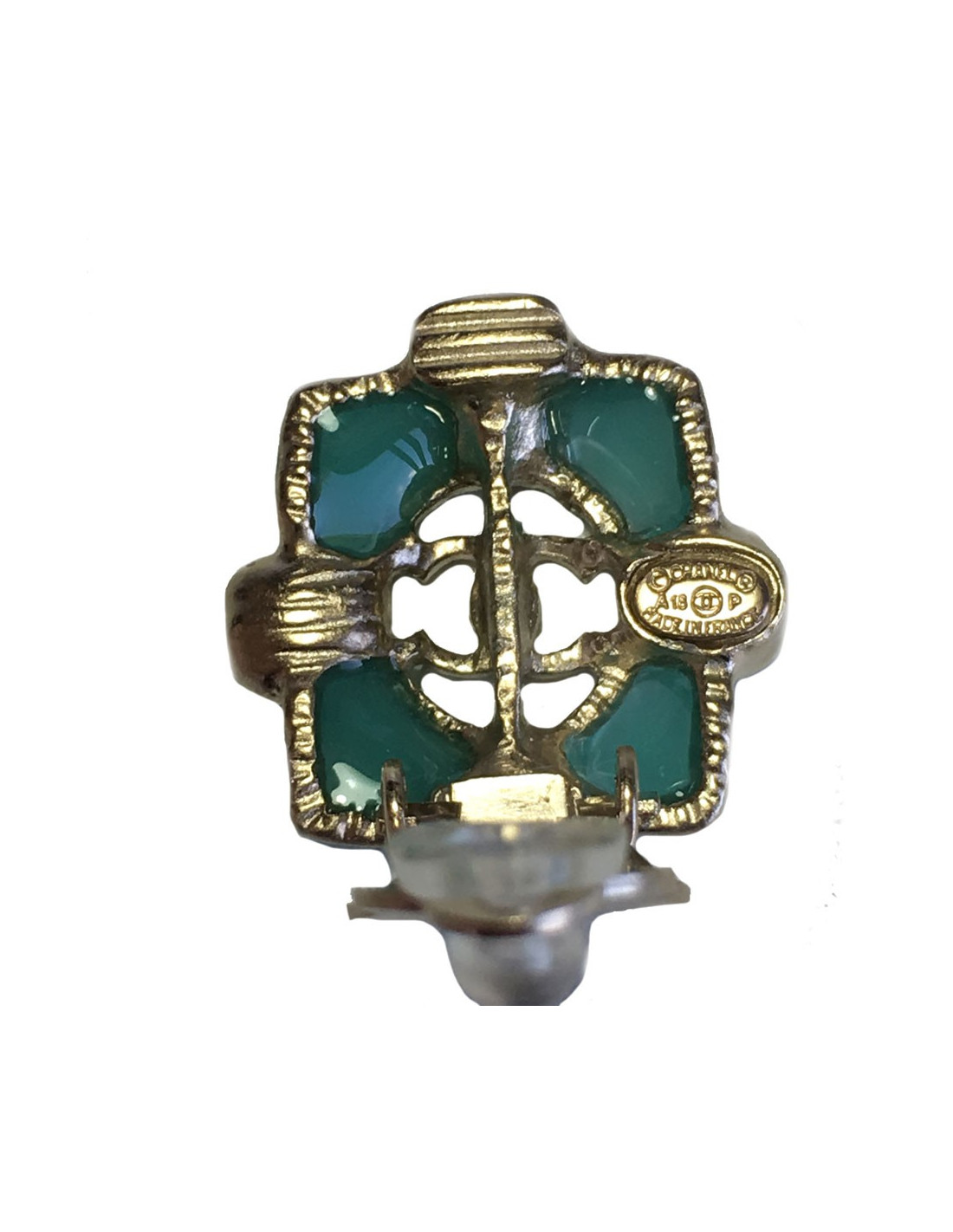 Boucles d'oreille clips CHANEL en pâte de verre couleur jade et métal doré