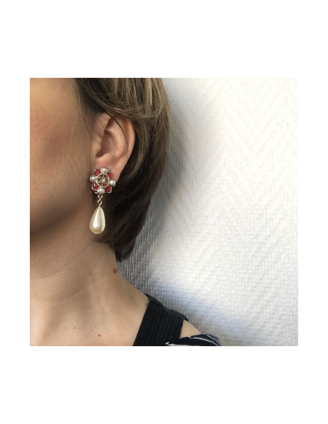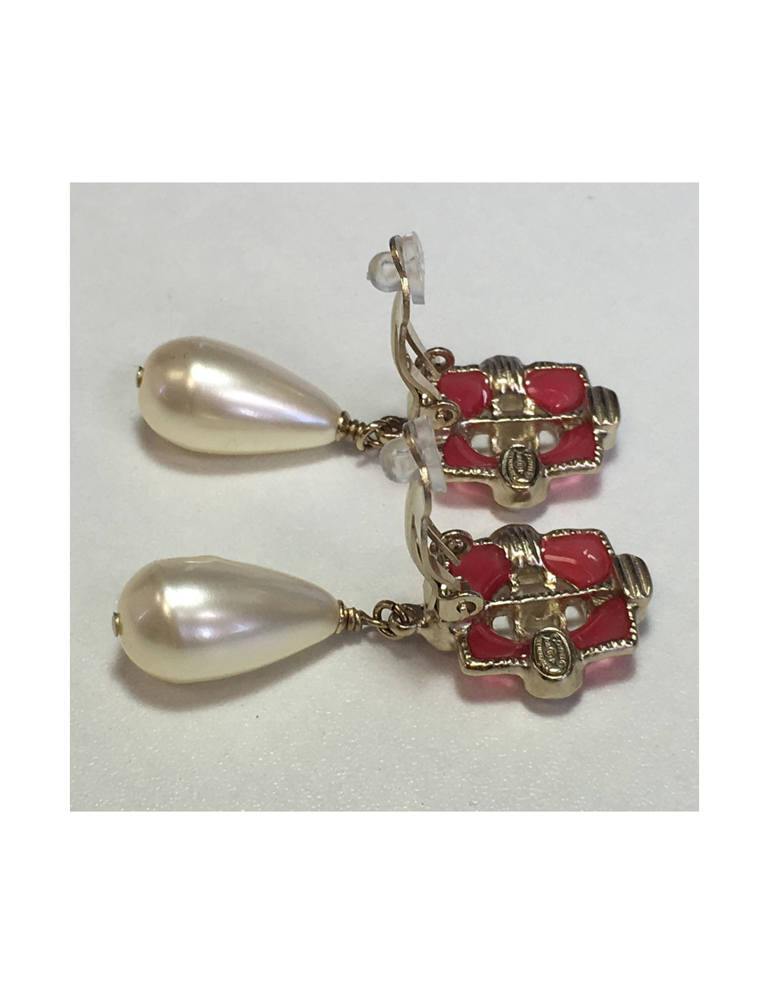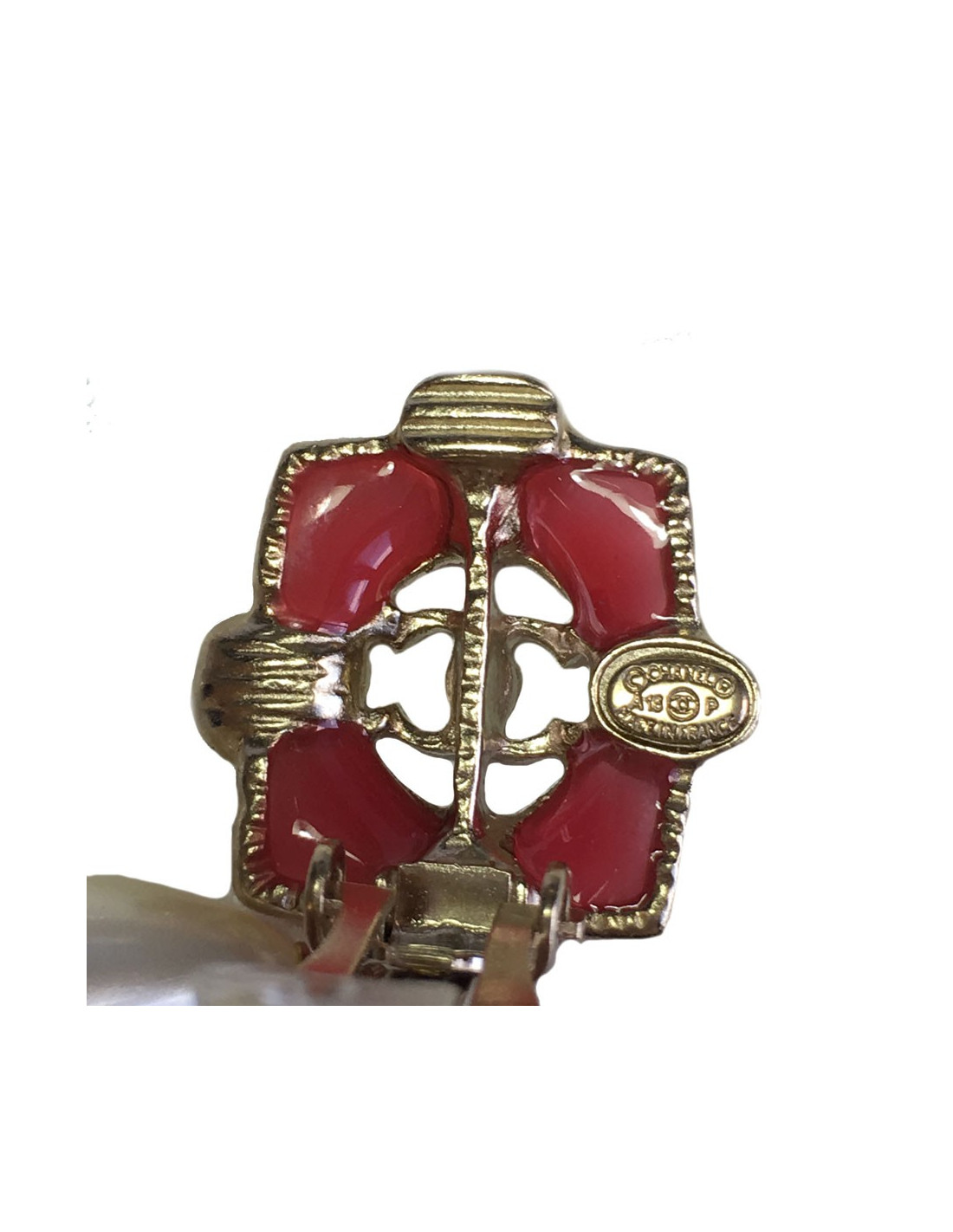 Boucles d'oreille clips CHANEL perle nacrée et résine rose