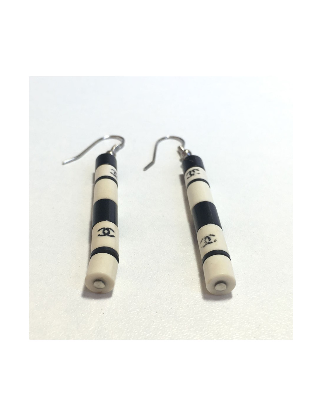 Boucles d'oreille clous CHANEL bambous noir et beige