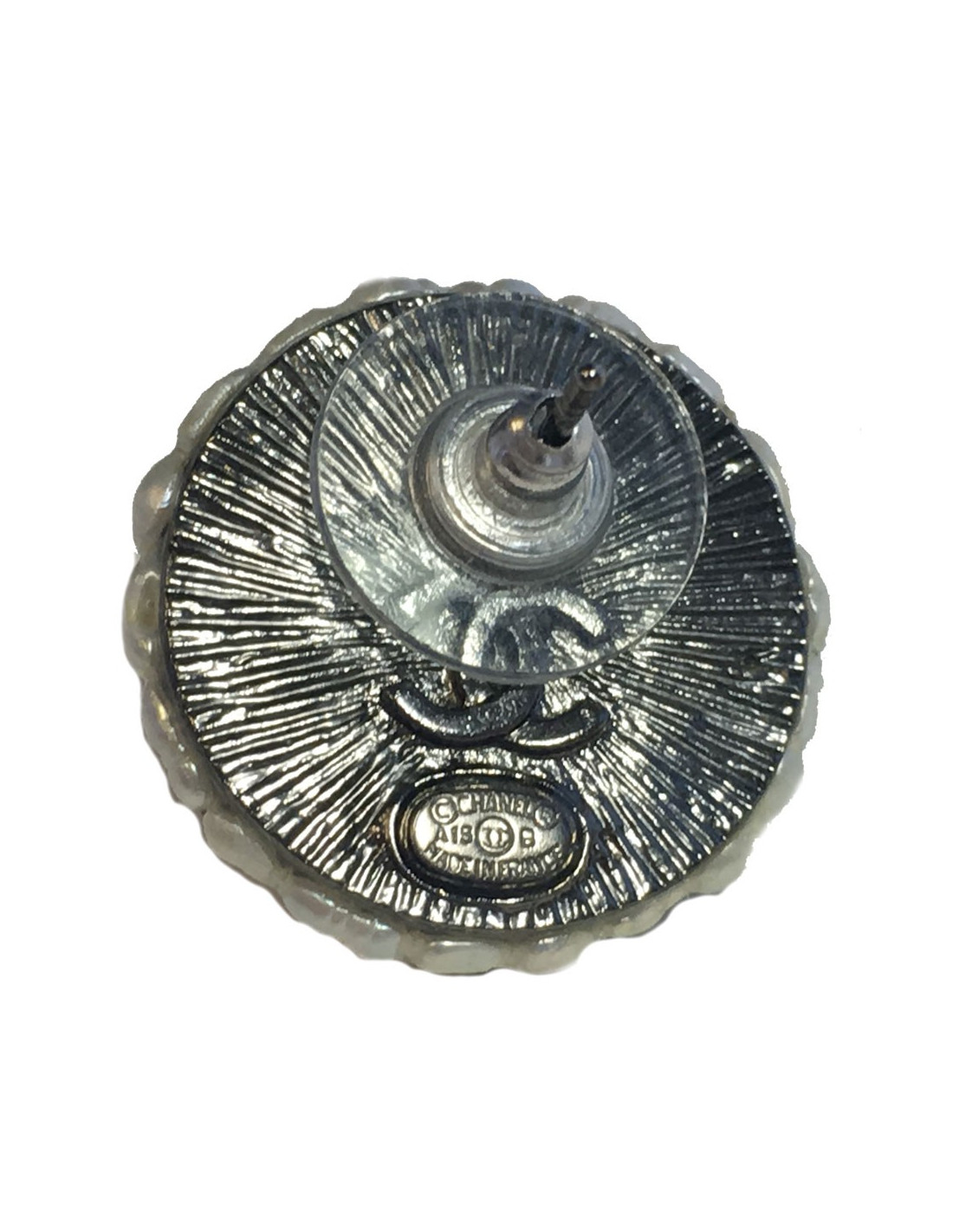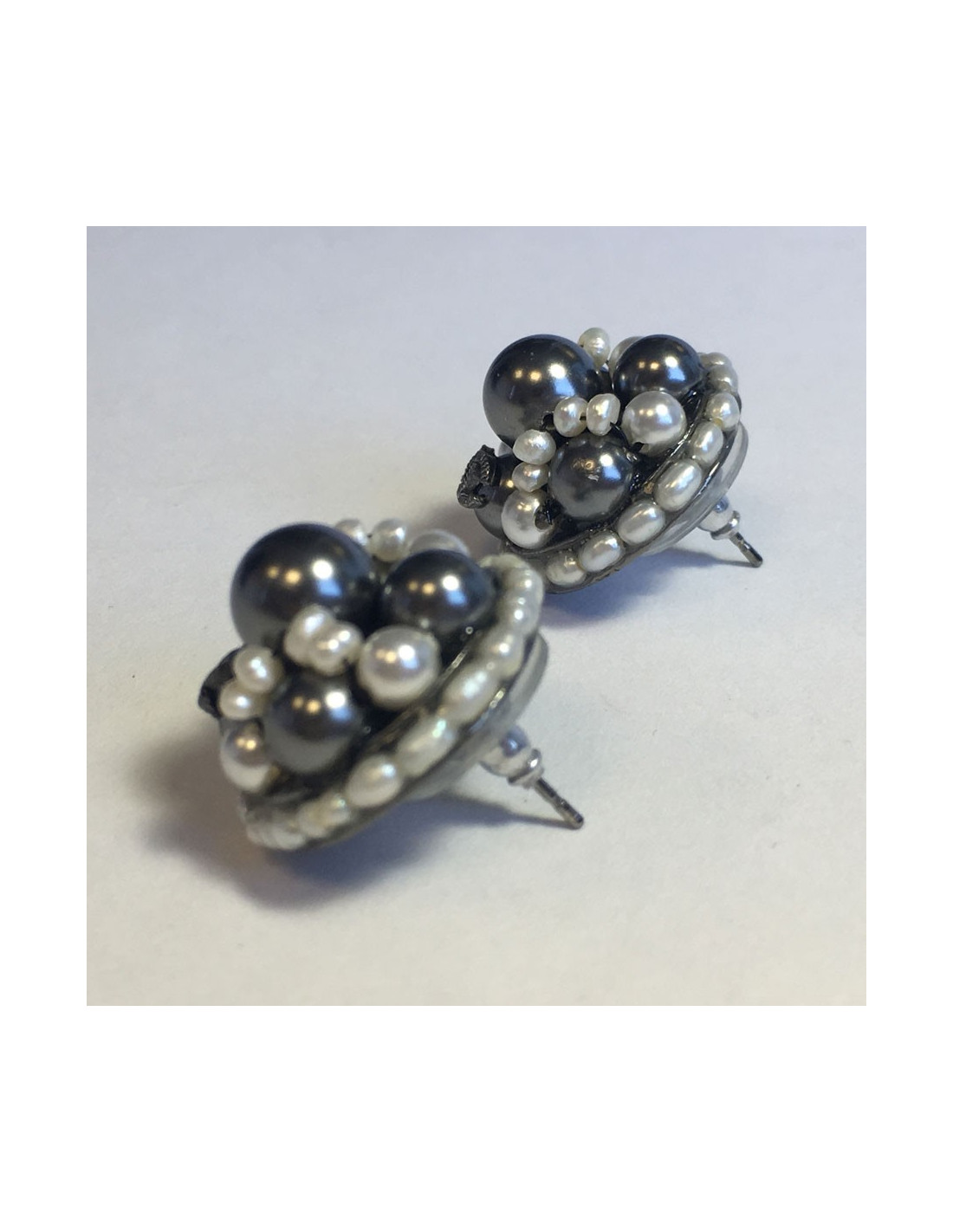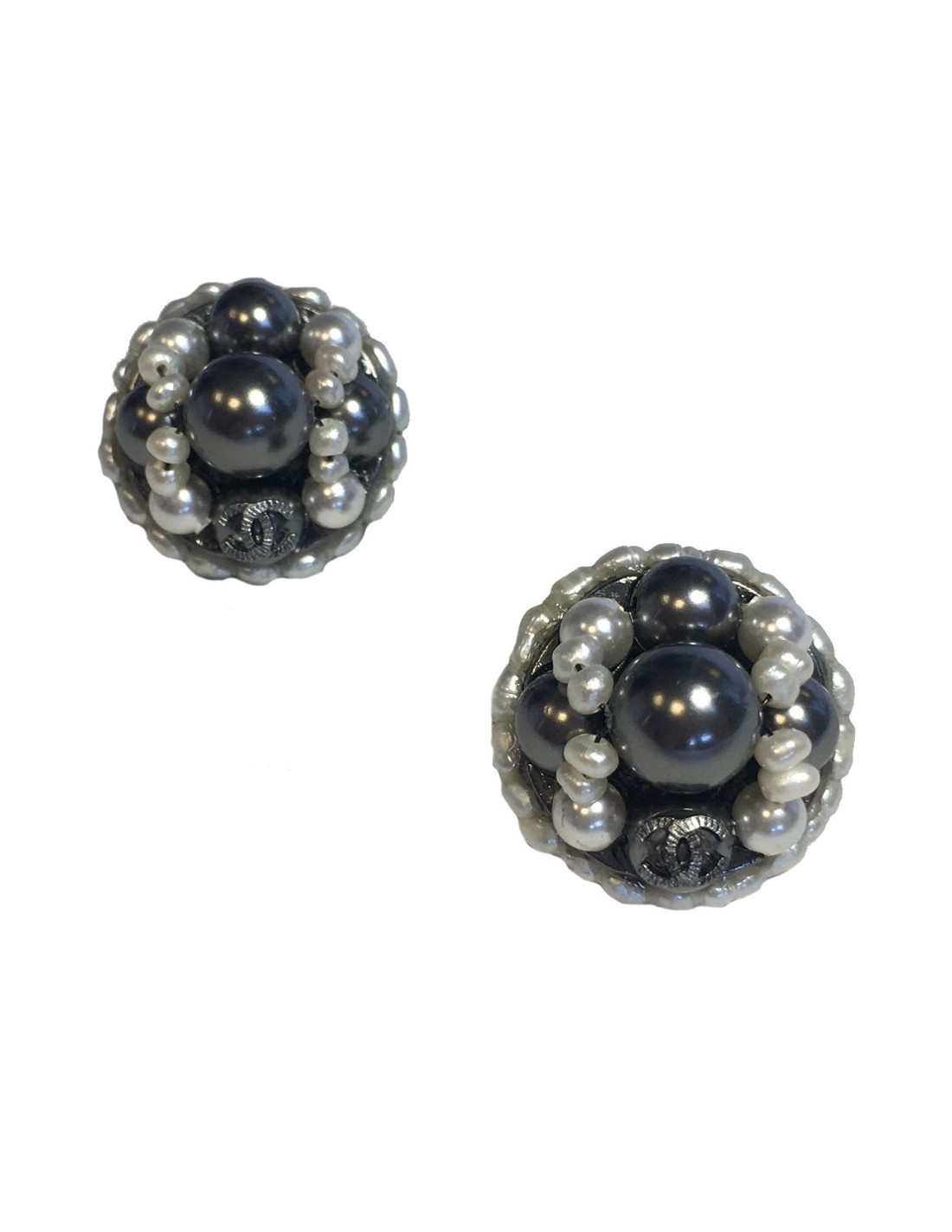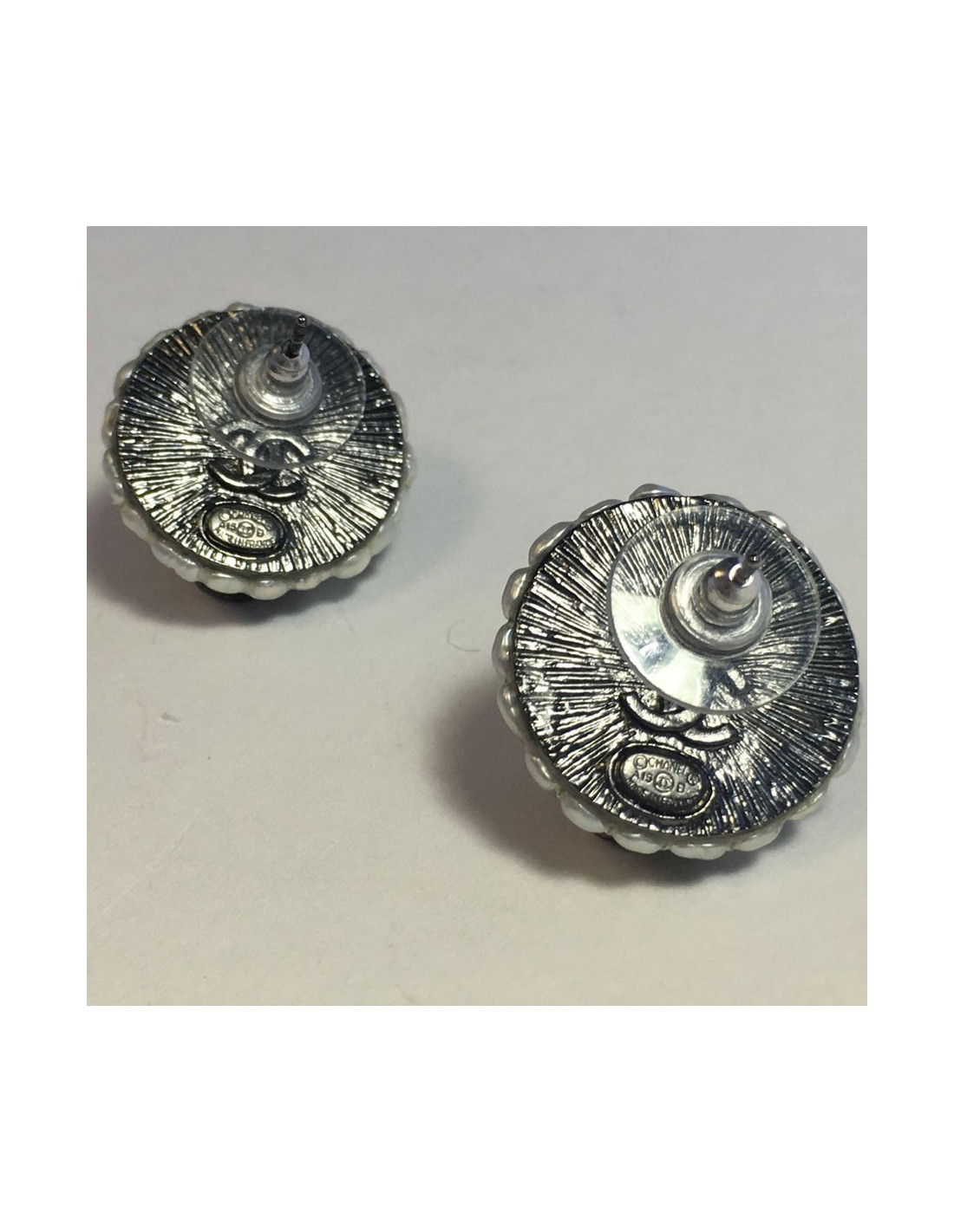 Boucles d'oreilles clous CHANEL perlées gris et nacré
