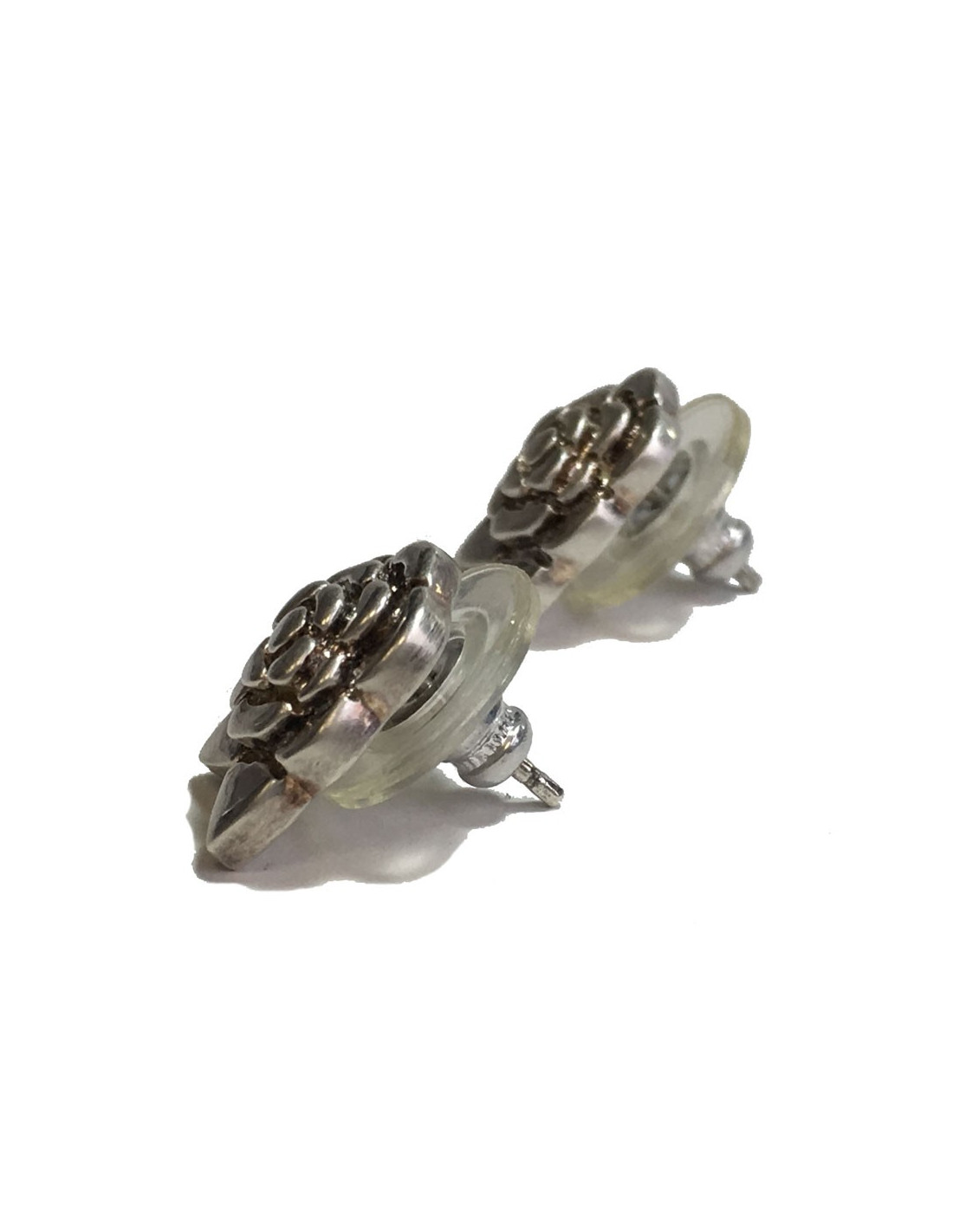Boucles d'oreille clous CHANEL camélias en argent 925.