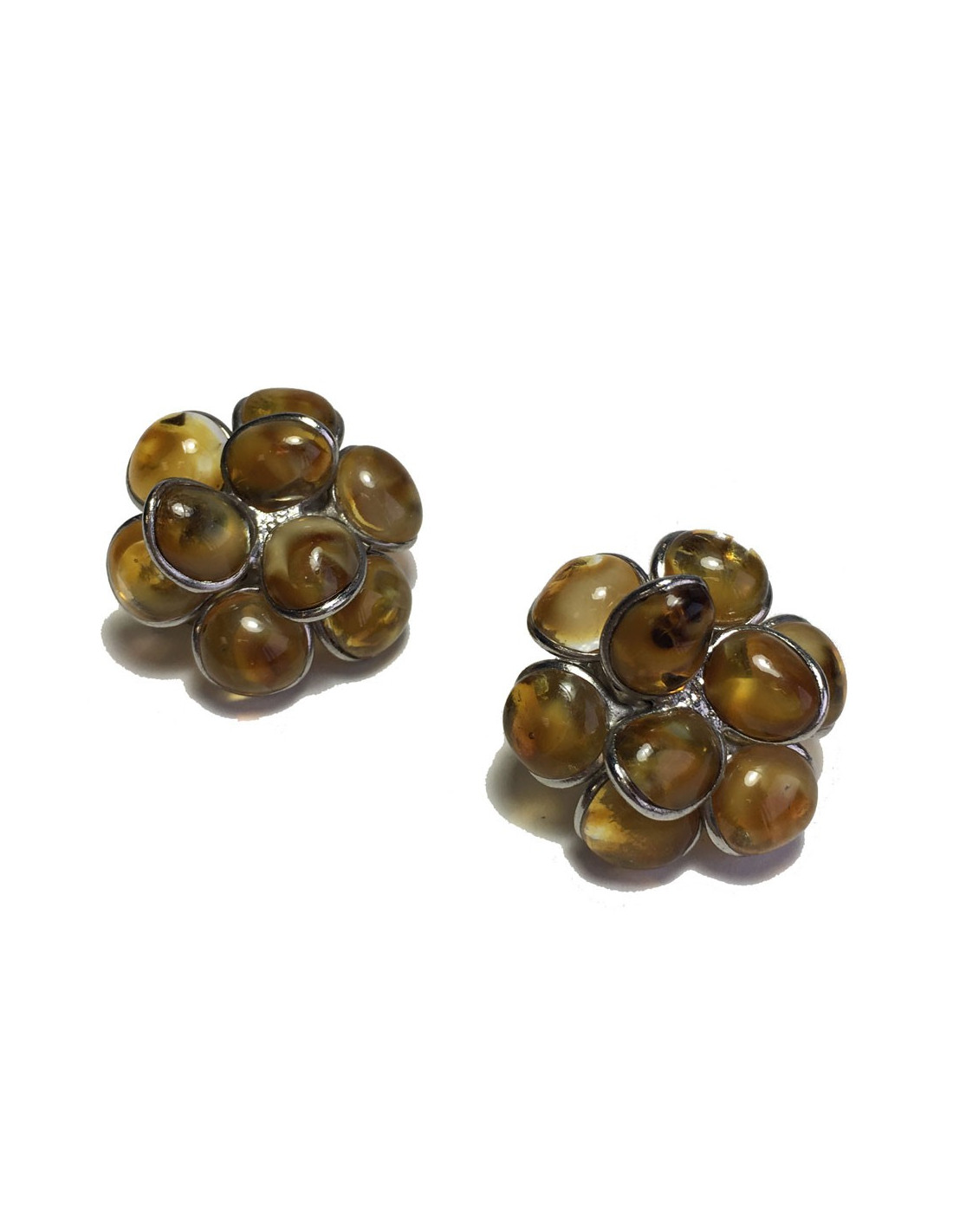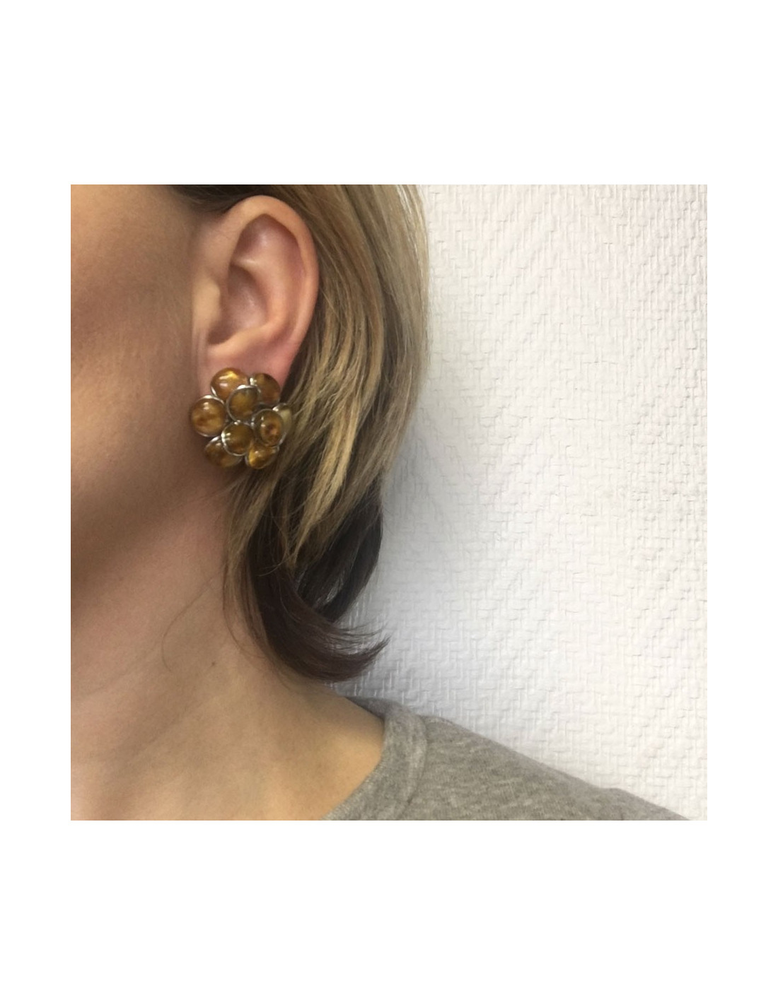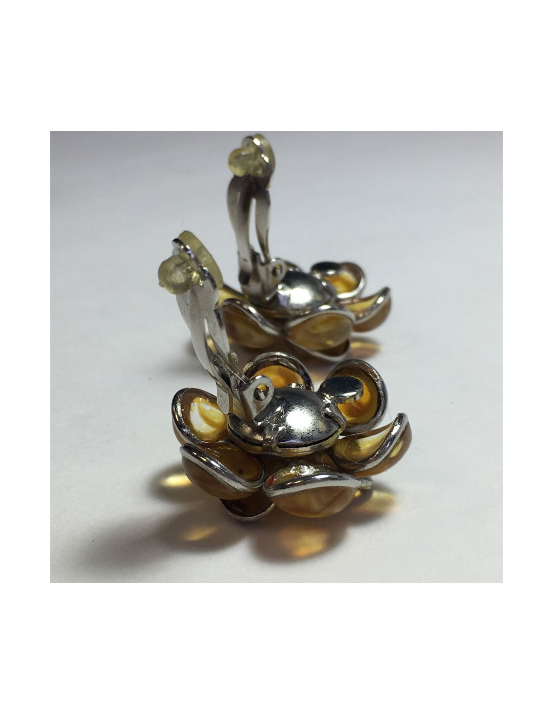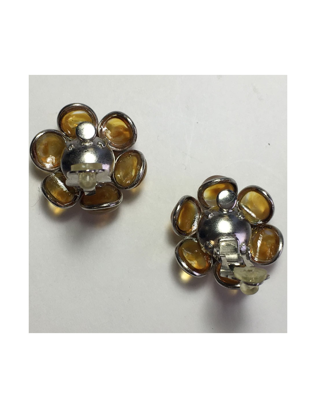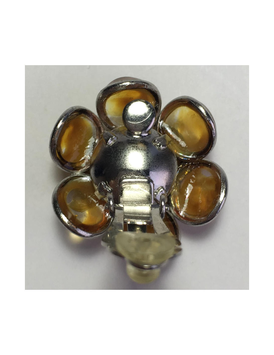 Boucles d'oreille clips MARGUERITE DE VALOIS fleur en pâte de verre couleur ambre