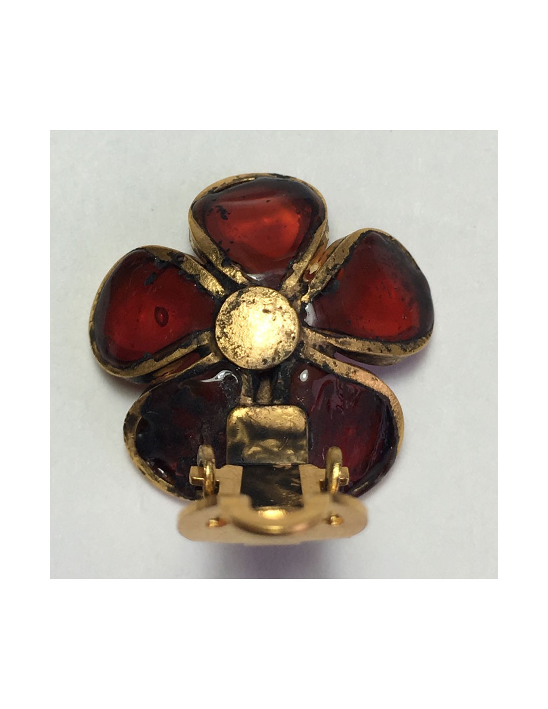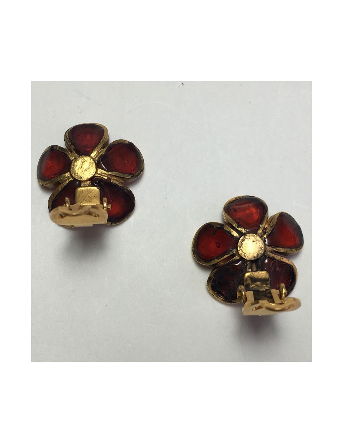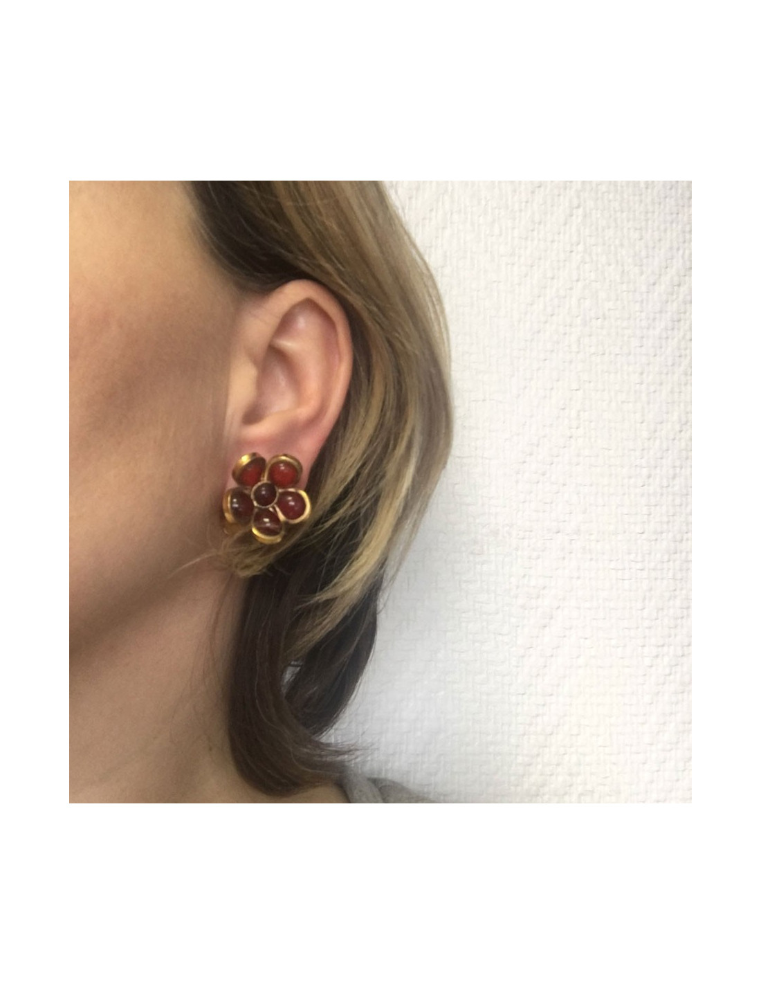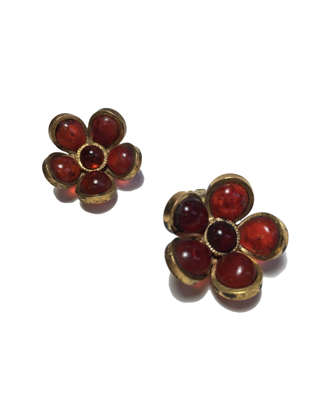 Boucles d'oreille clips MARGUERITE DE VALOIS fleurette en pâte de verre rouge ambré et métal doré à l'or fin.