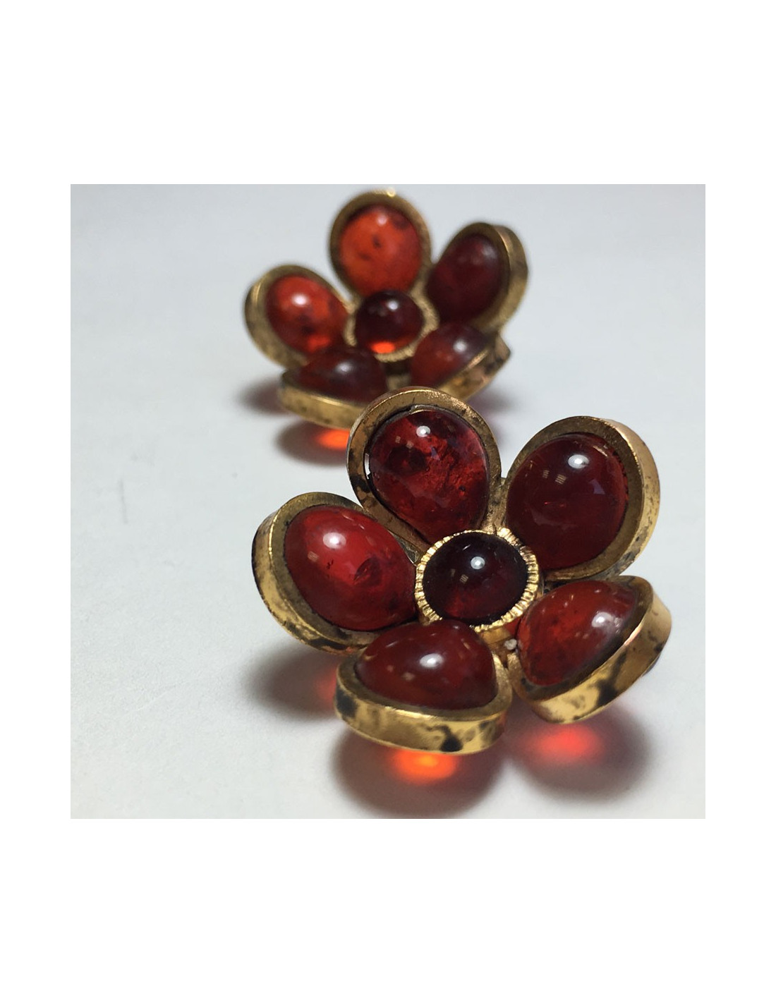 Boucles d'oreille clips MARGUERITE DE VALOIS fleurette en pâte de verre rouge ambré