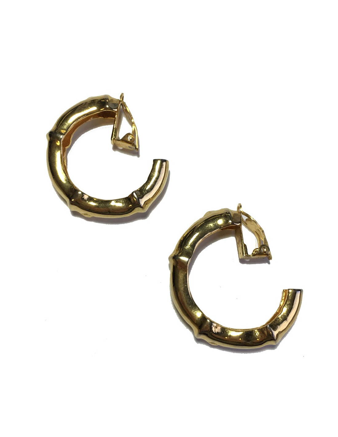 Boucles d'oreille clips HERMES créoles bambou en plaqué or vintage. Clips vintage en très bon état.