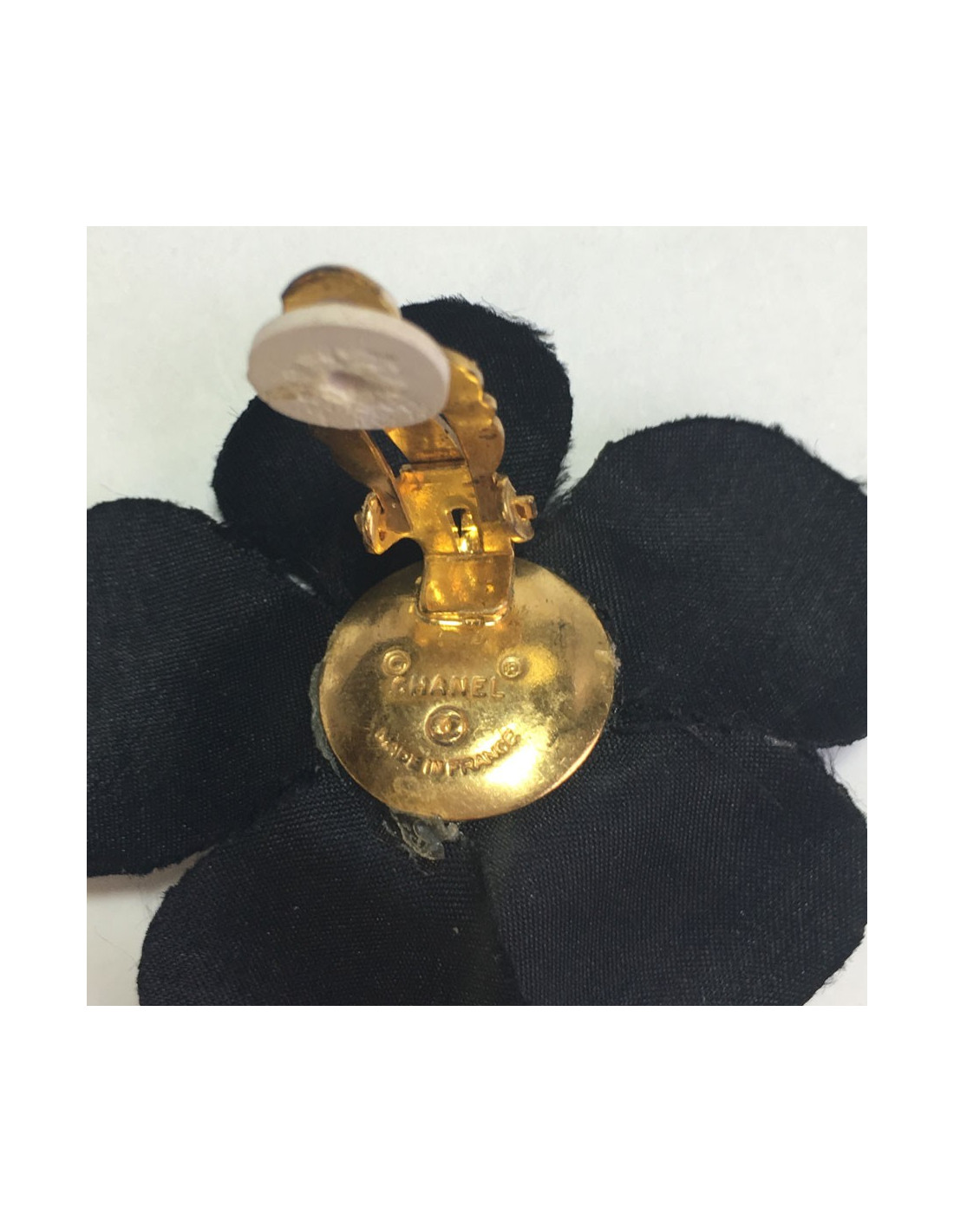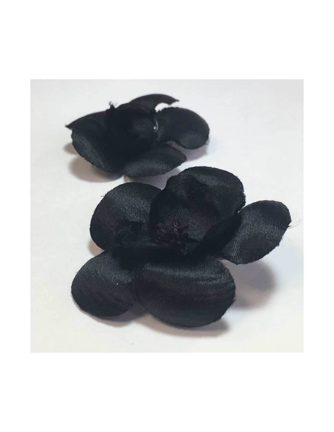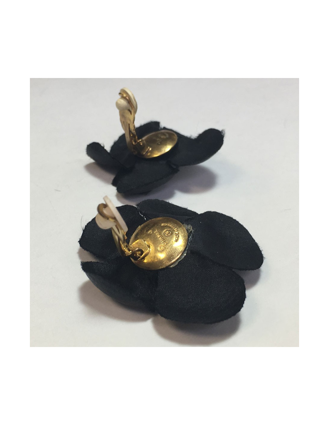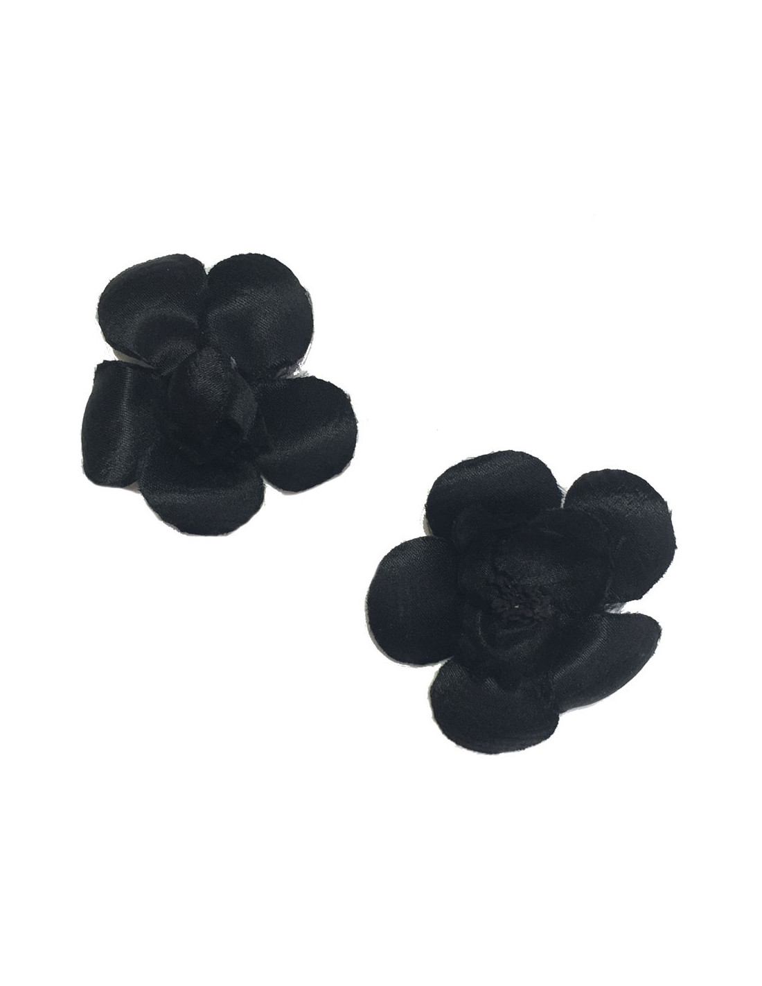 Boucles d'oreille clips CHANEL camélias en soie noire vintage