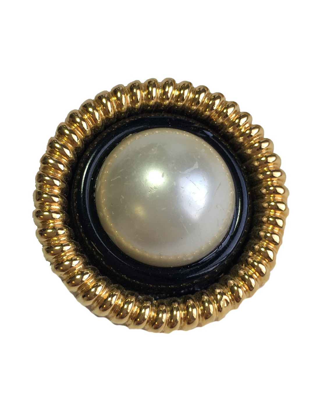 Boucles d'oreille clips Chanel Couture, en métal doré, perle nacrée au centre.