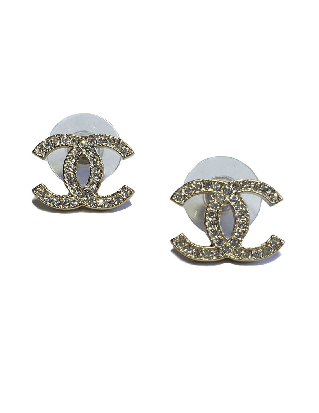 Ces Boucles d’oreille clous Chanel en métal doré couleur or pâle sont serties de strass Swarovski.
