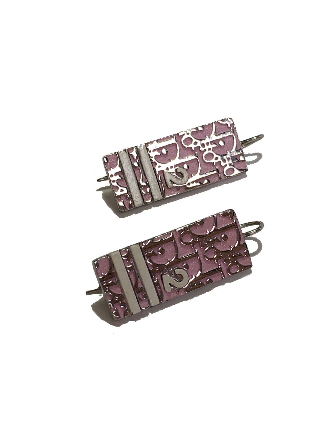 Boucles d'oreille clous DIOR monogram en émail rose et métal argenté.