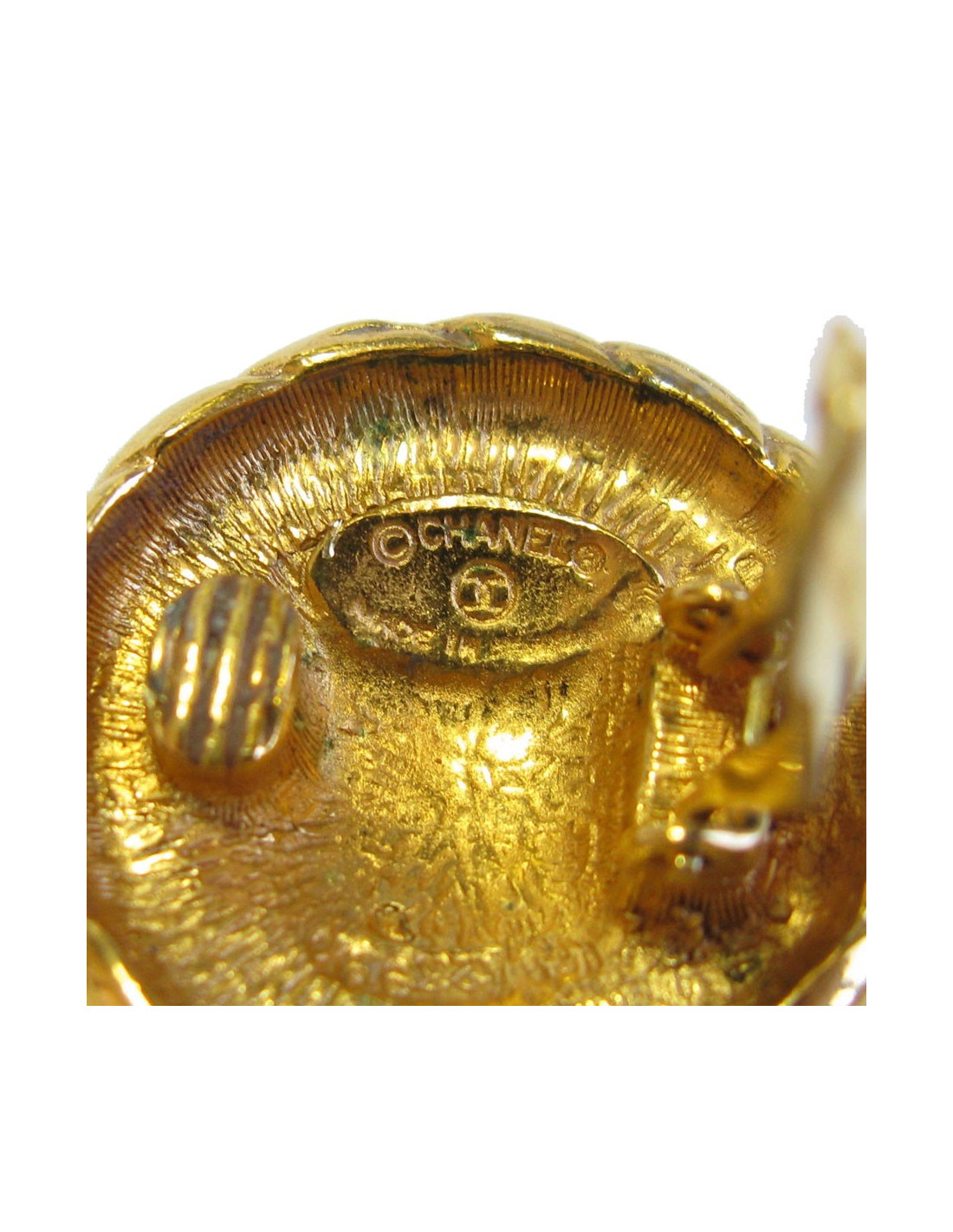 Boucles d'oreille clips CHANEL vintage en métal doré.