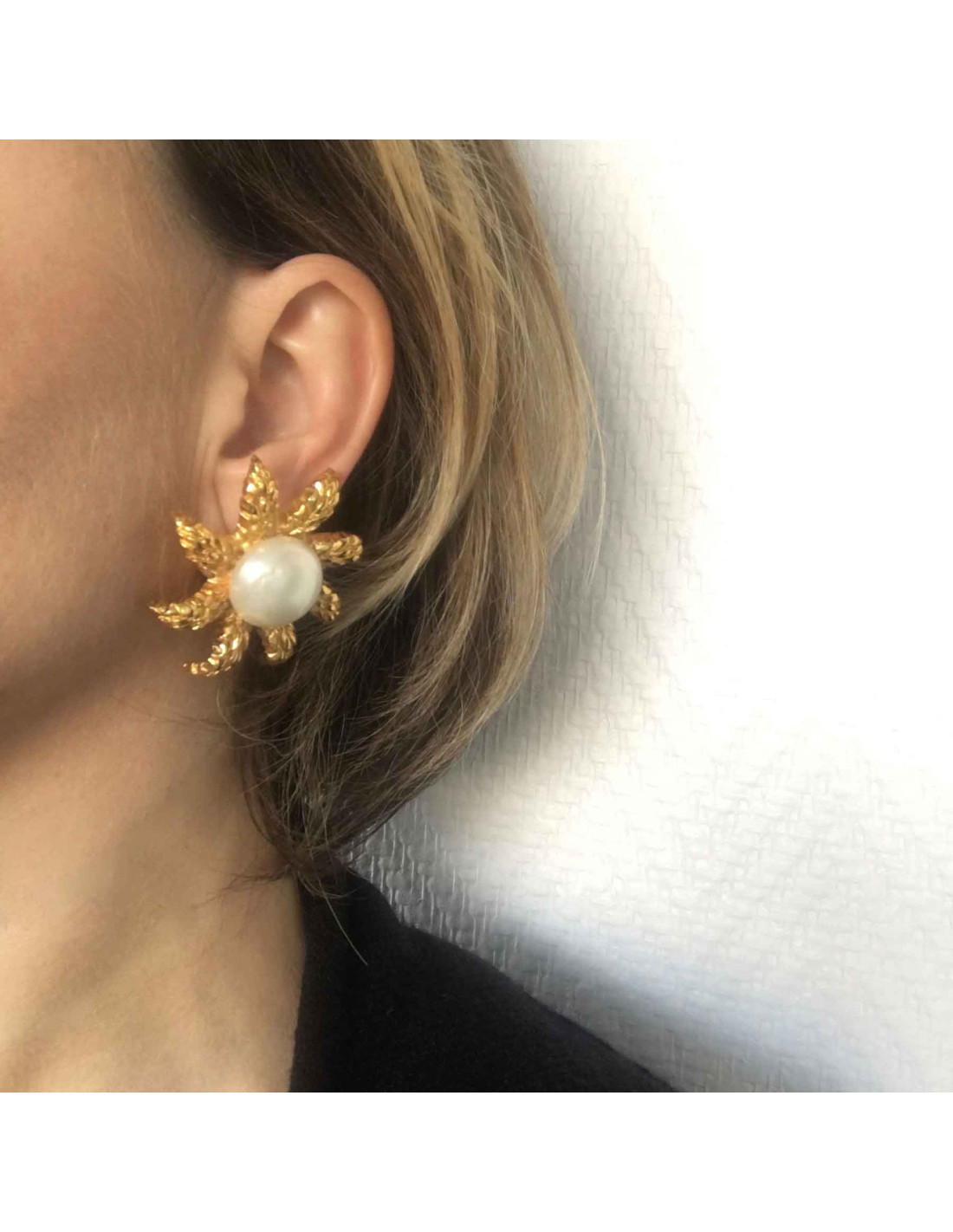 Boucles d'oreille clips CHANEL épis de blé en métal doré et perle nacrée