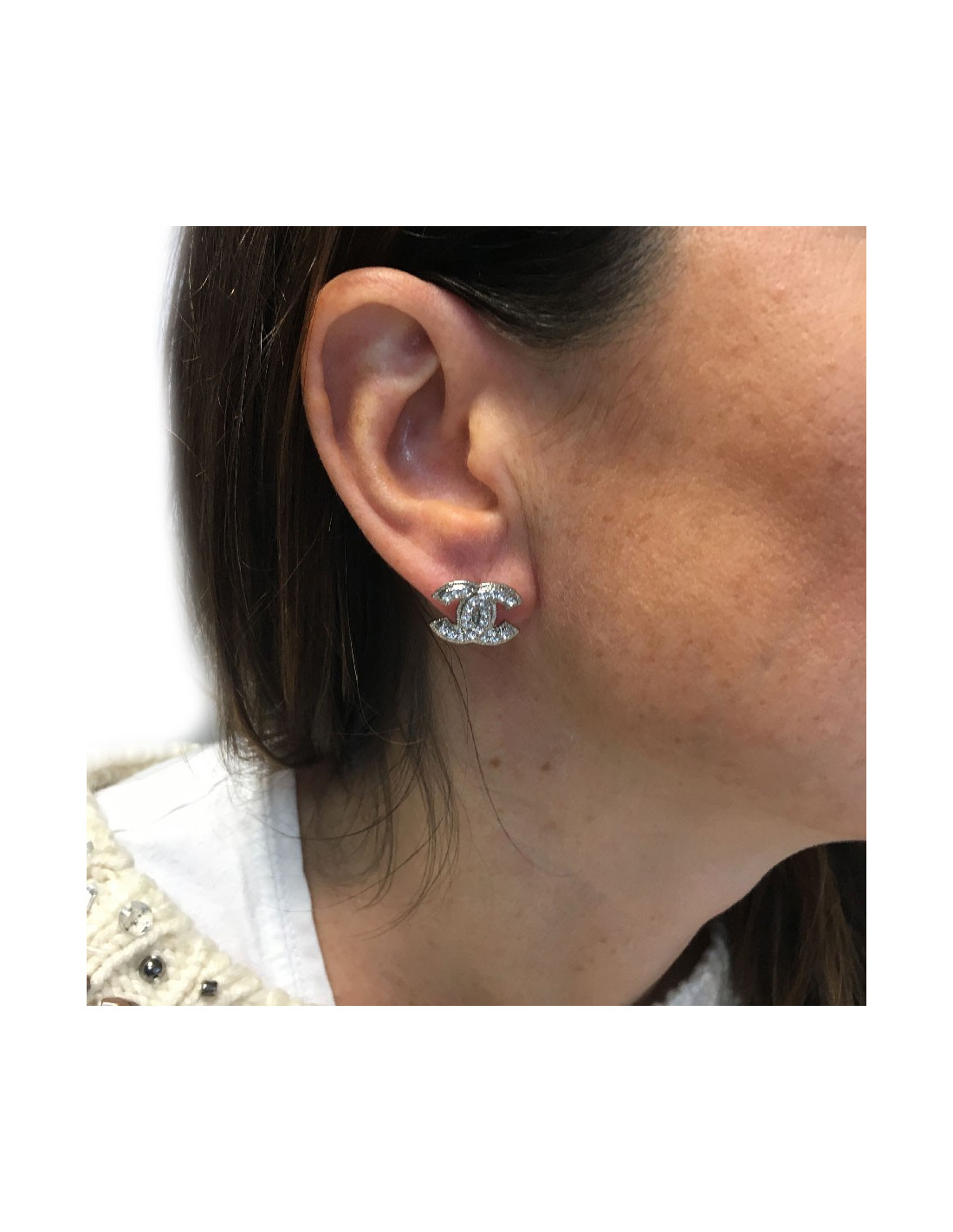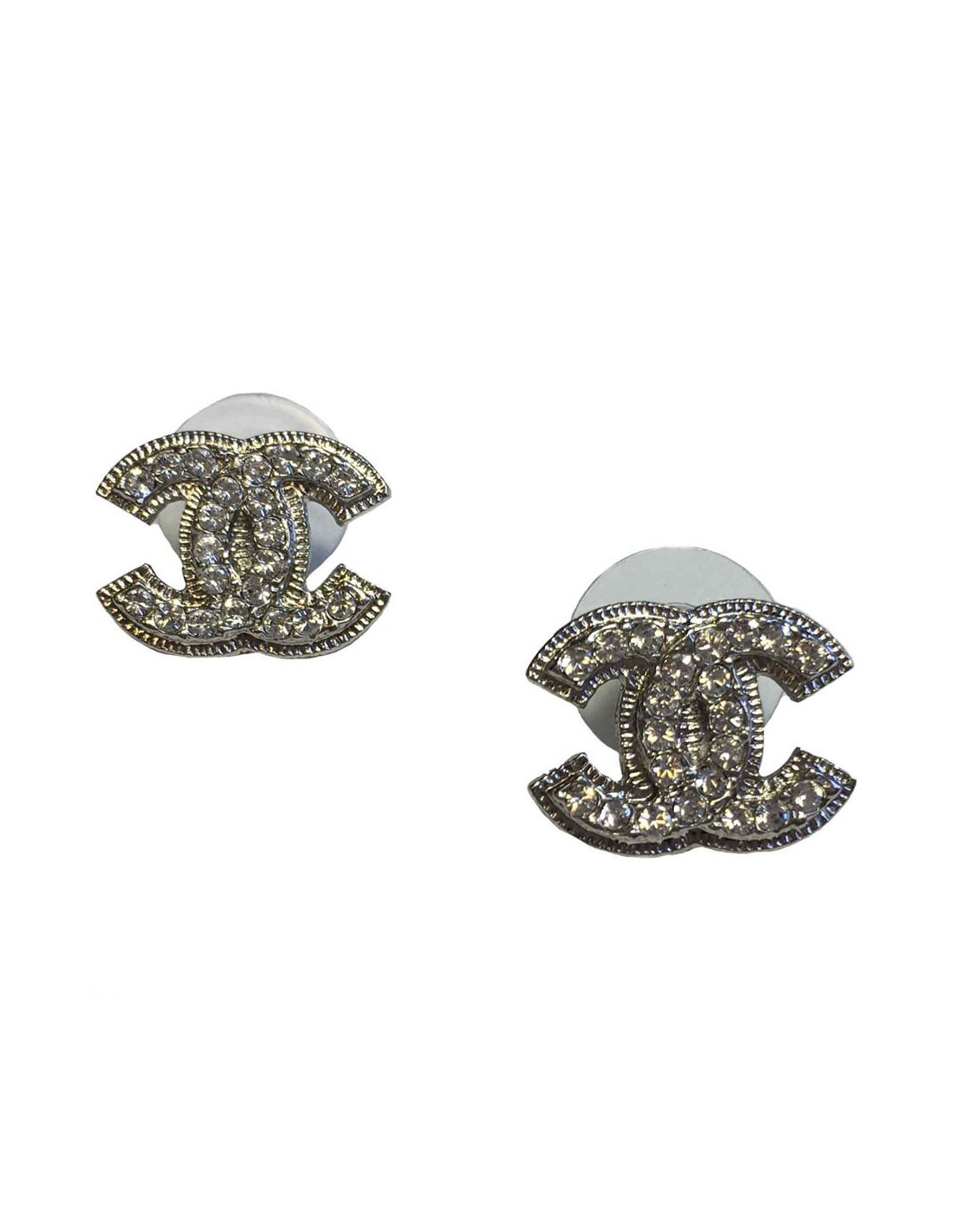 Boucles d'oreille clous CHANEL CC en métal argenté et strass