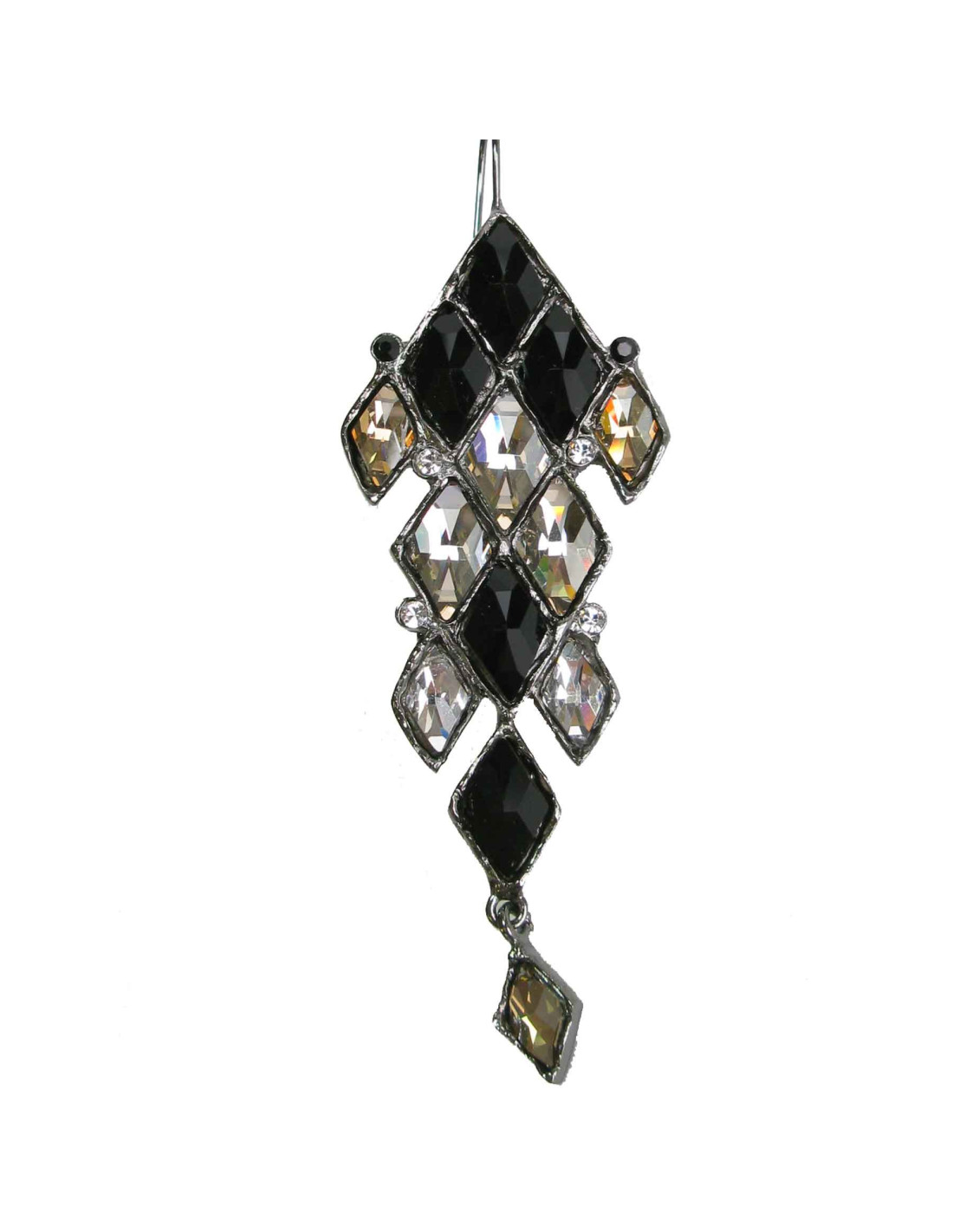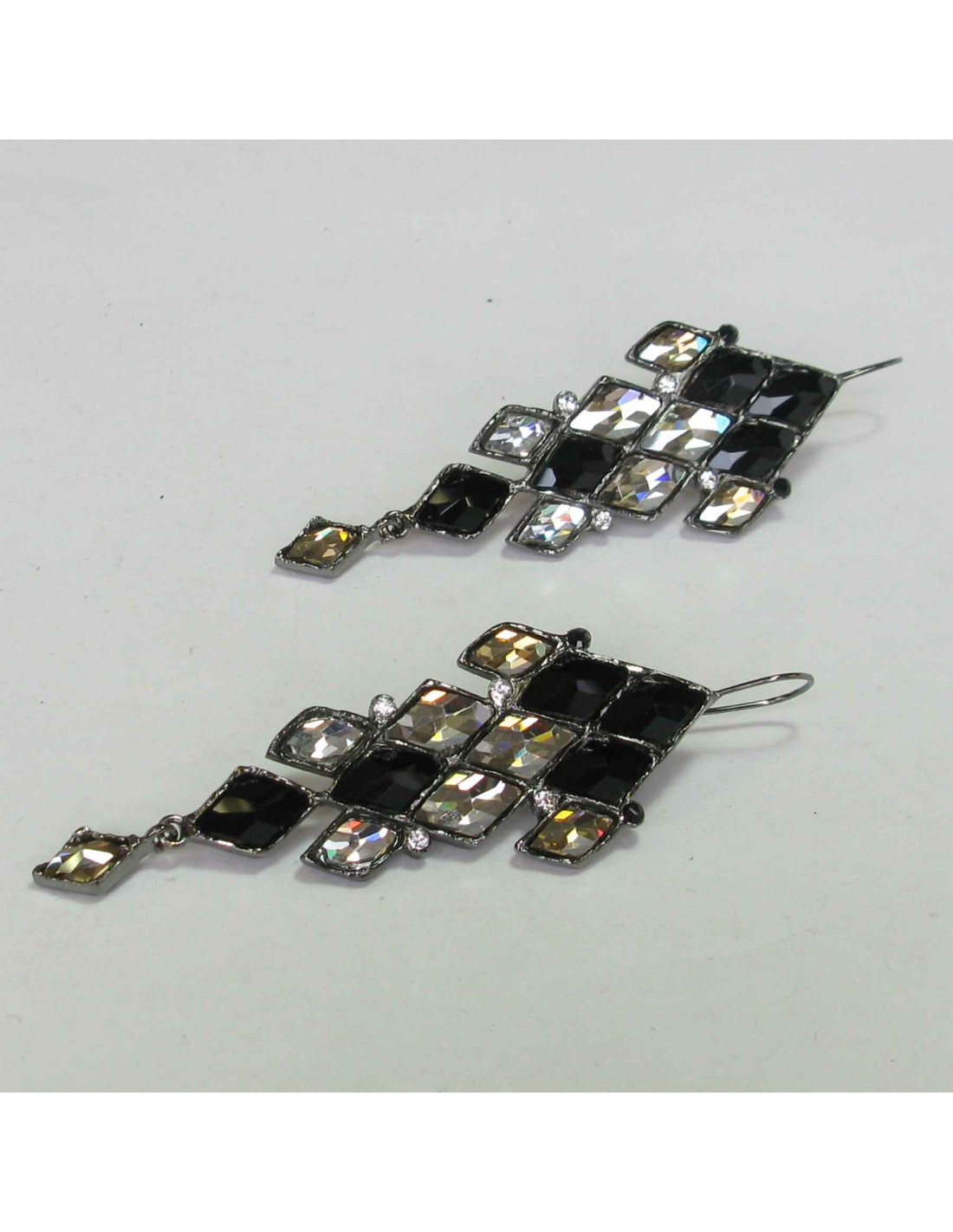Boucles d'oreille clous YSL Yves Saint Laurent pendants en ruthénium sertis entièrement de pierres facettées noires et strass.