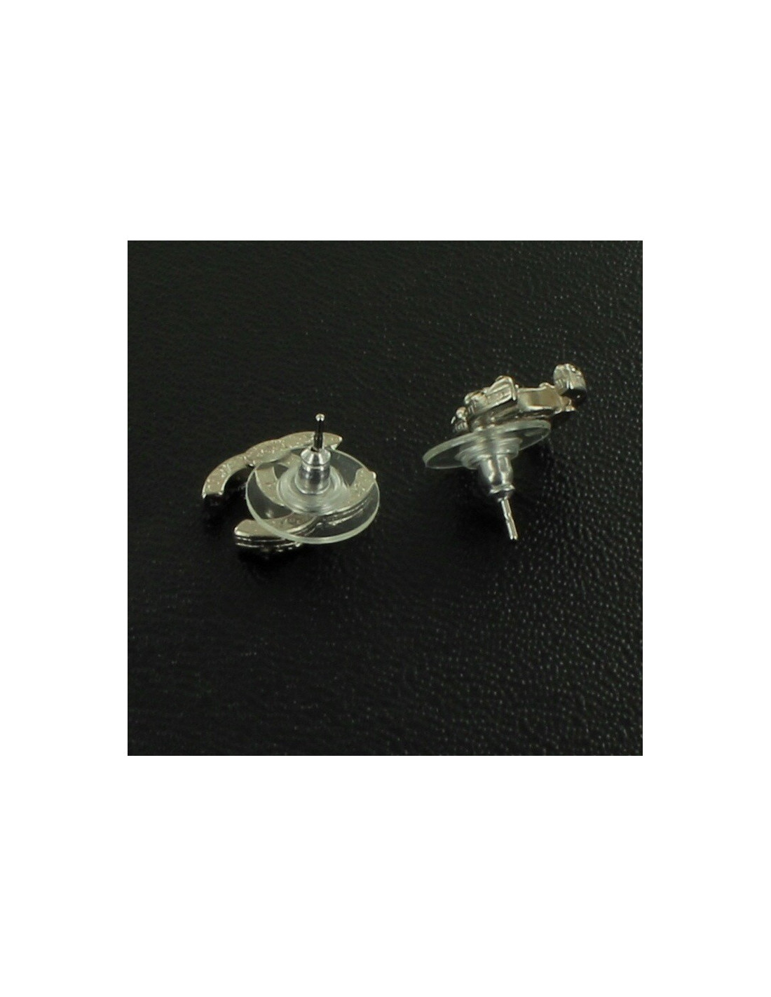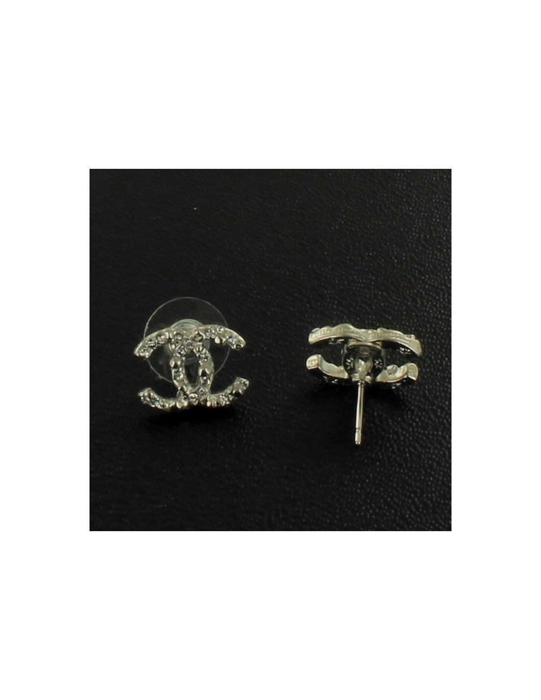 Clous d'oreille " CC" CHANEL cloutés strass et métal argent