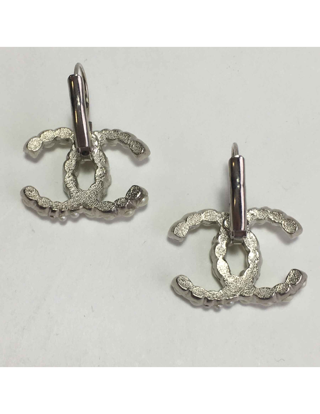Boucles d'oreille clous CHANEL CC en métal argenté et strass