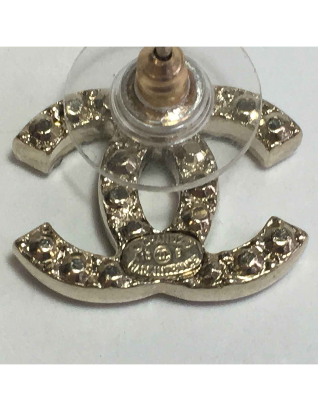 Boucles d'oreilles clous CHANEL CC en strass et métal doré