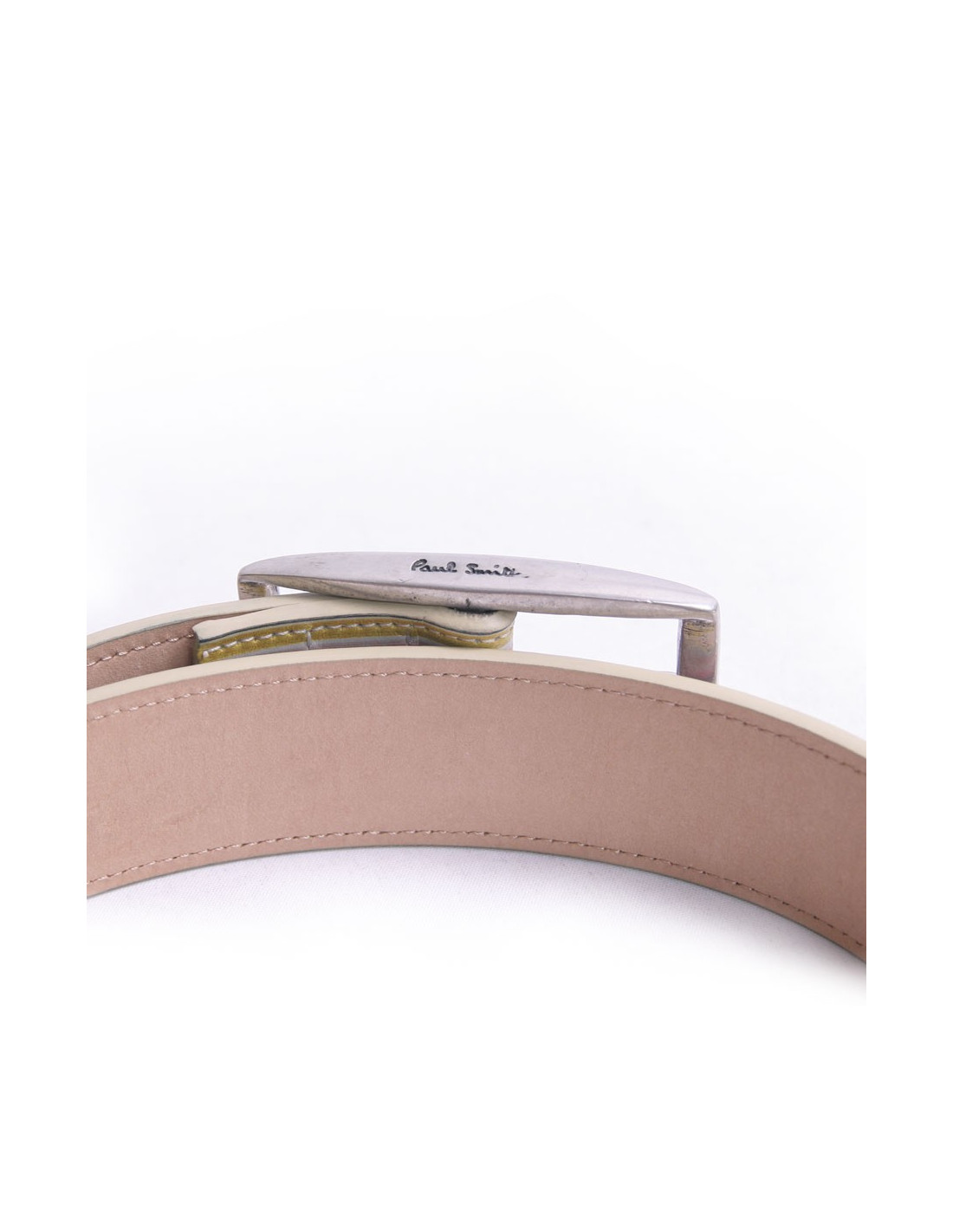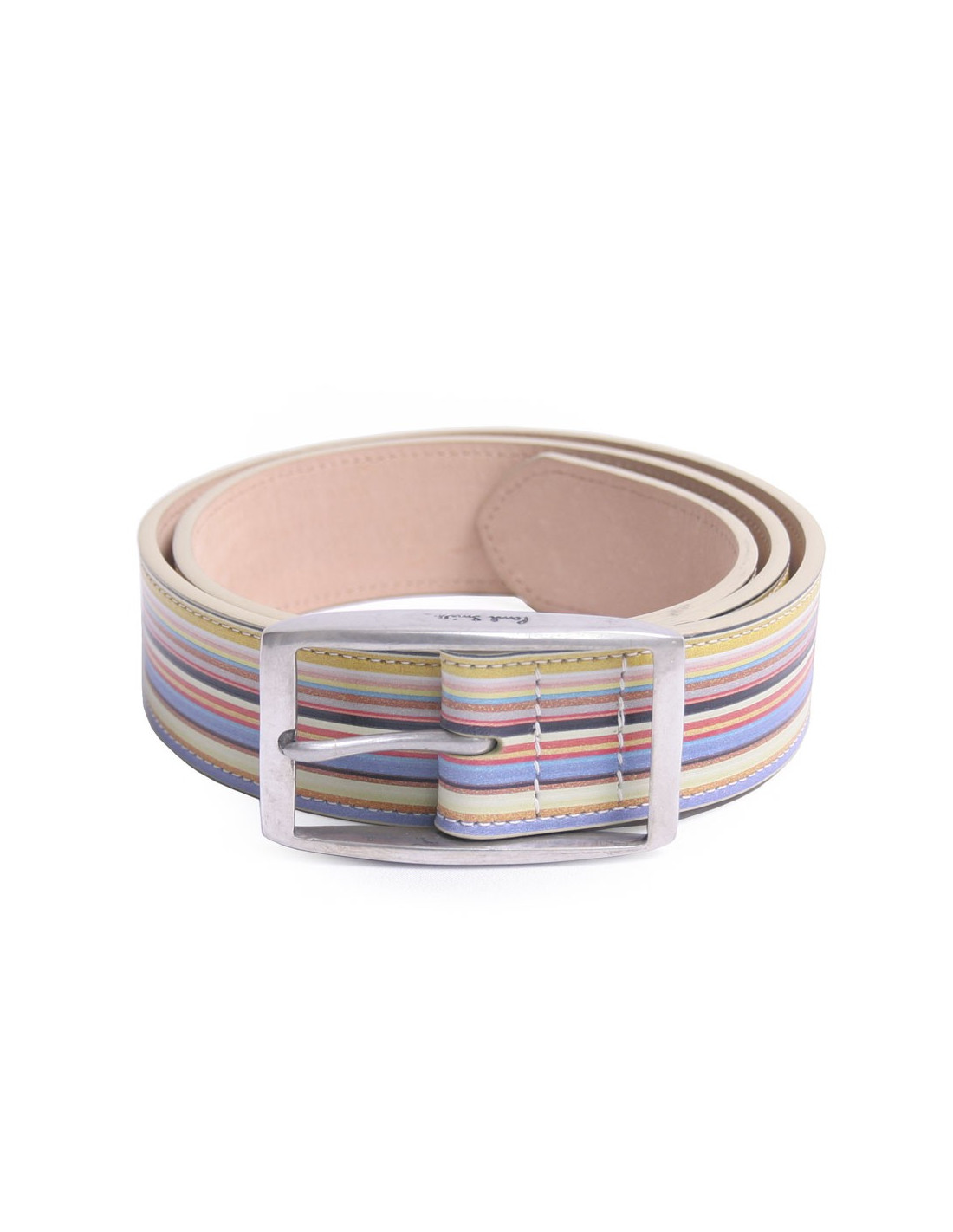 Ceinture Paul Smith en cuir véritable multicolores. 5 trous. Boucle en acier. En très bon état. Légère trace d'usure sur le côté de la boucle.