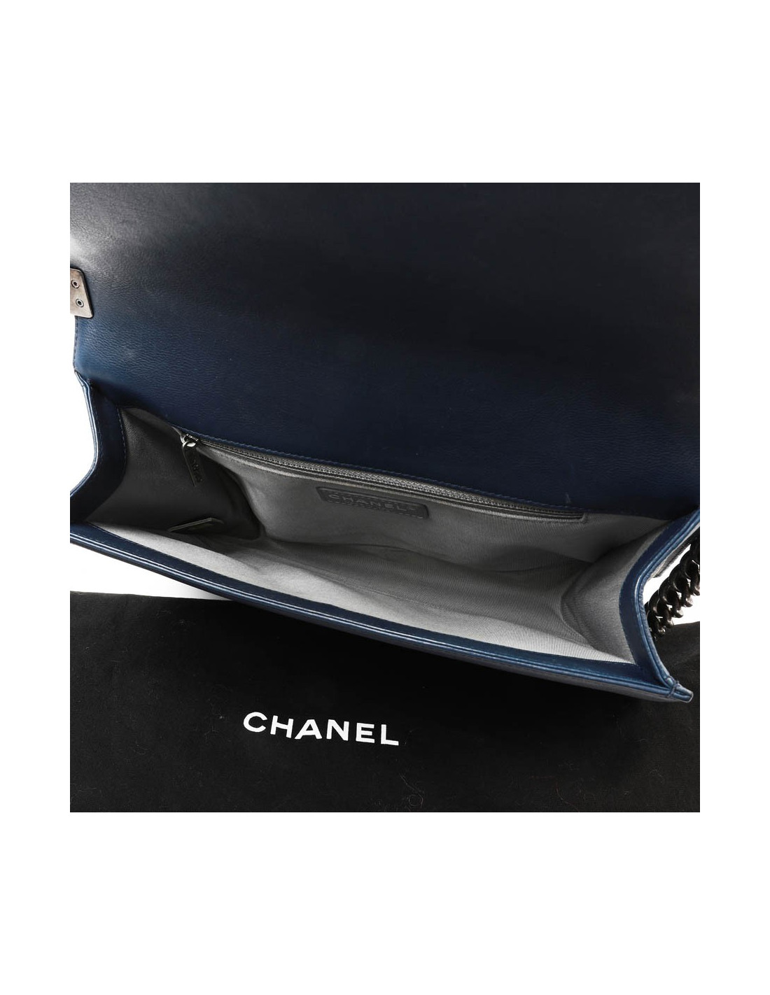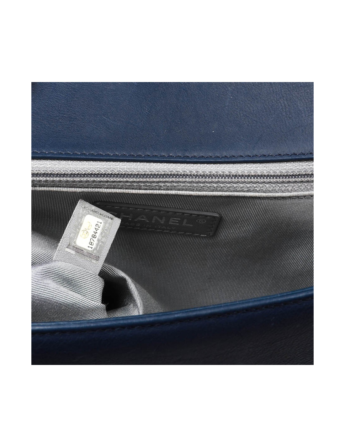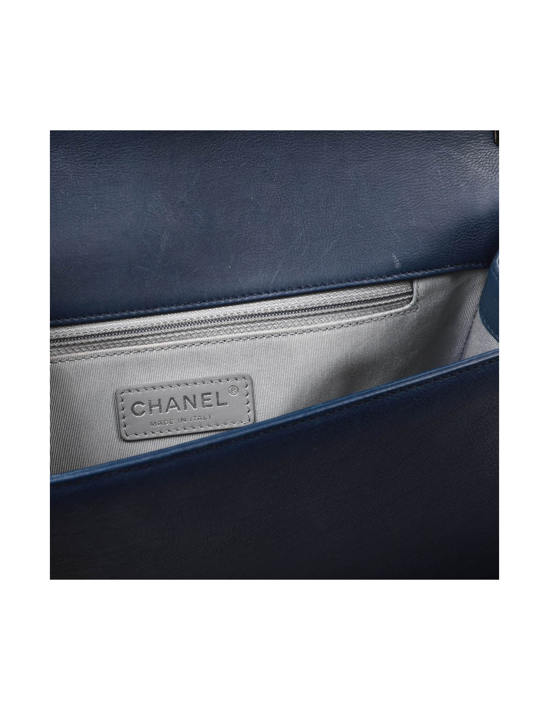 Pour l'histoire, ce sac a été imaginé par KarL Lagerfeld en 2010 suite à la découverte dans les archives de Coco Chanel, d'un sac de chasse celle-ci était devenu une cavalière et s'en servait de sac à main. Le rabat est doublé en cuir de même couleur. L'intérieur est doublé en toile grise avec une poche zippée.