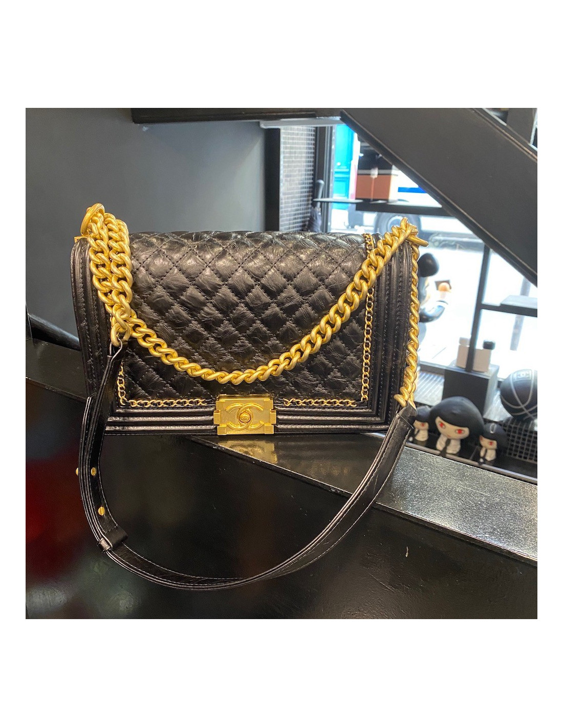 Sac Chanel Boy noir matelassé 25 cm
