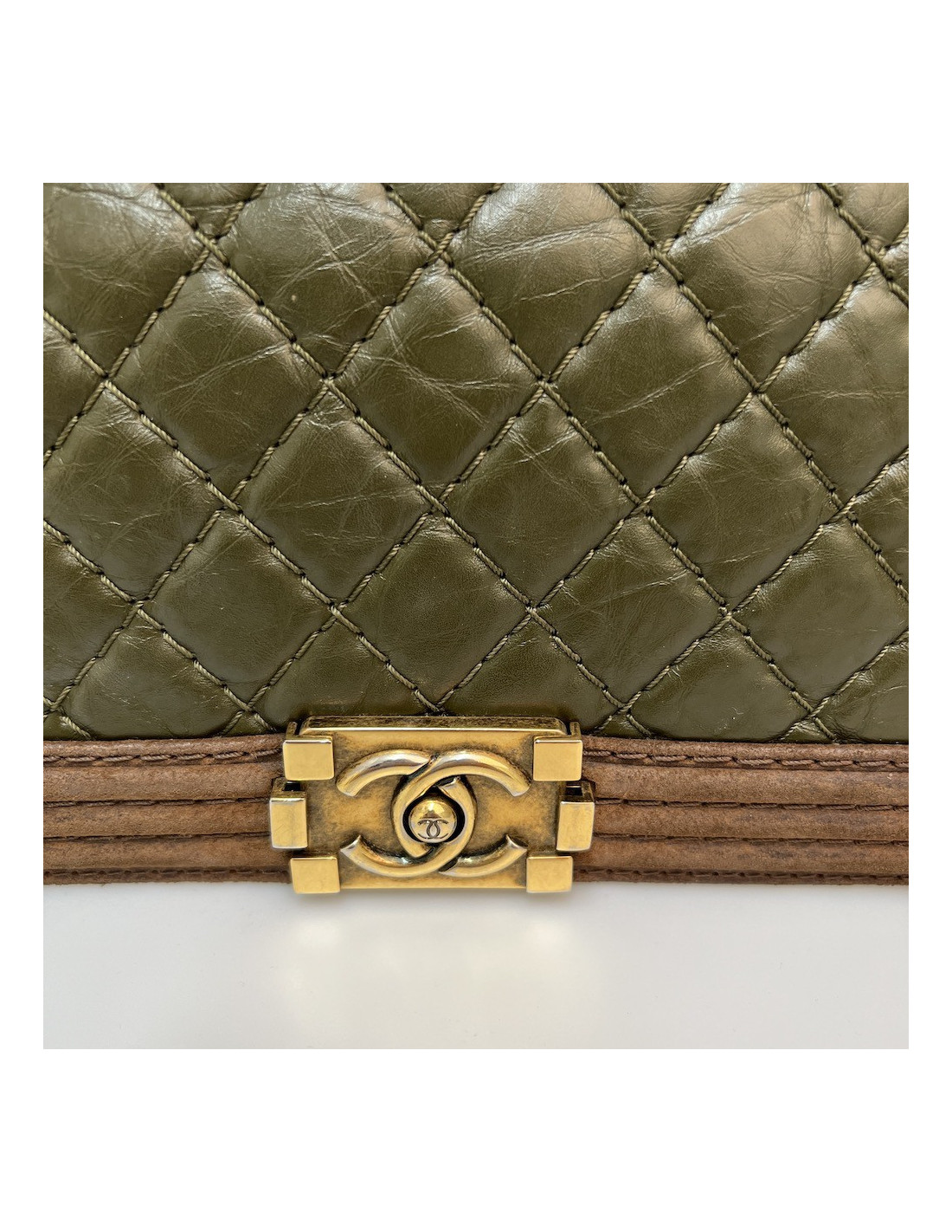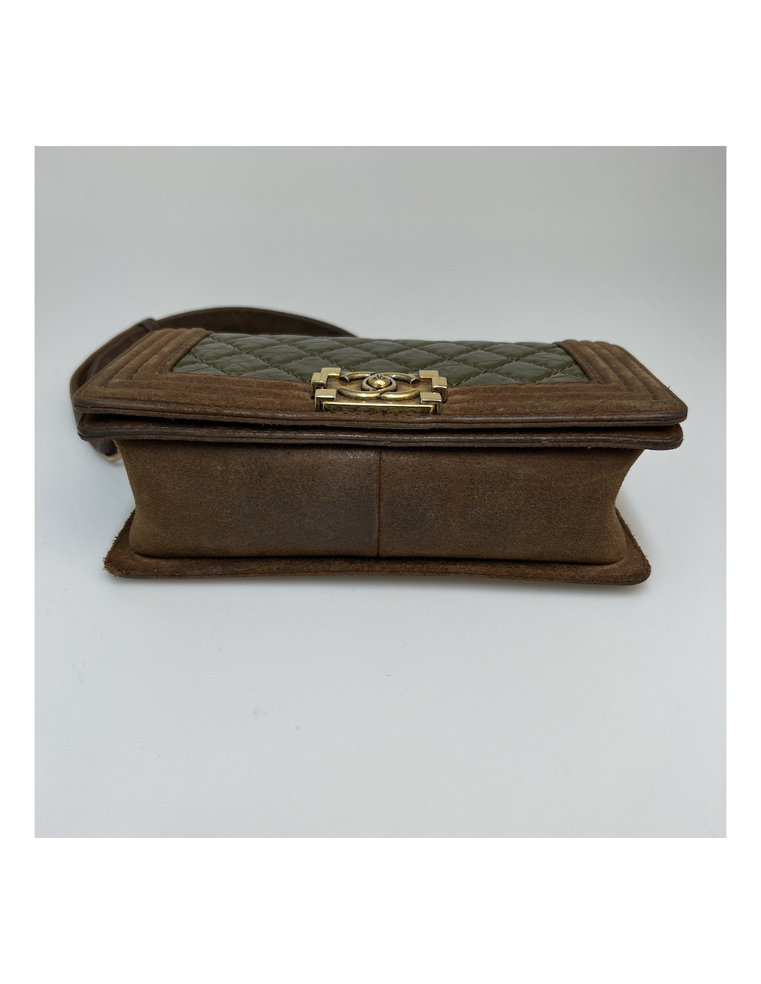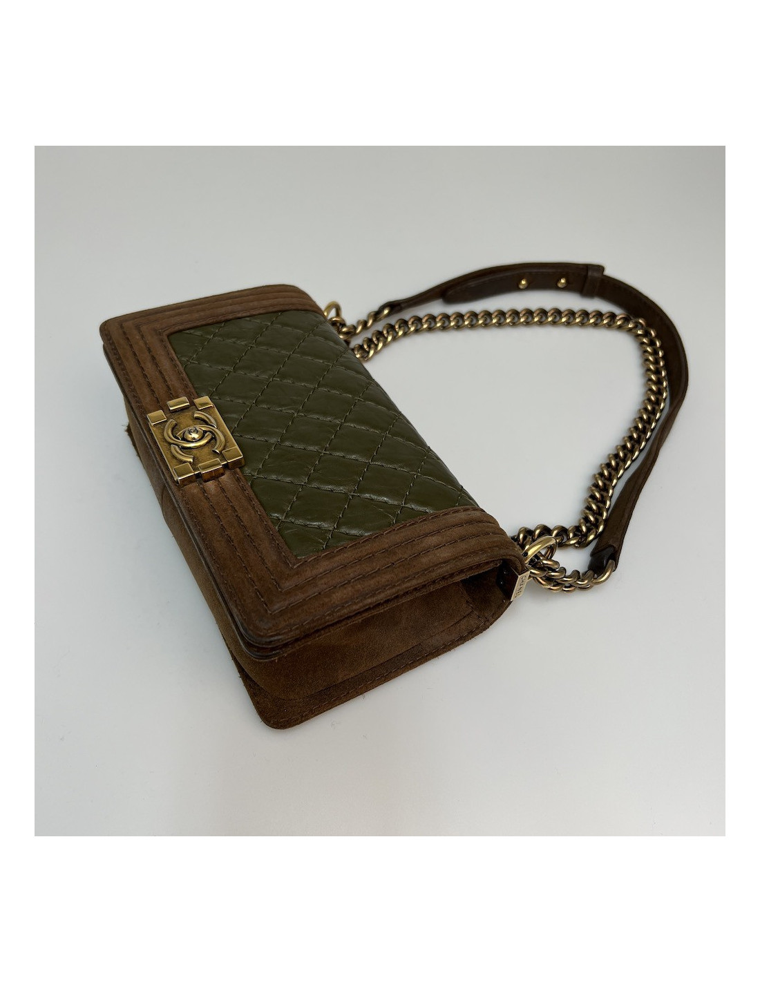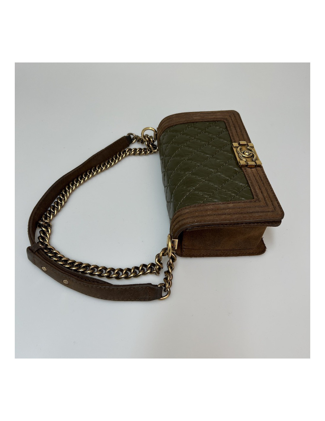 Boy CHANEL cuir bicolore kaki marron