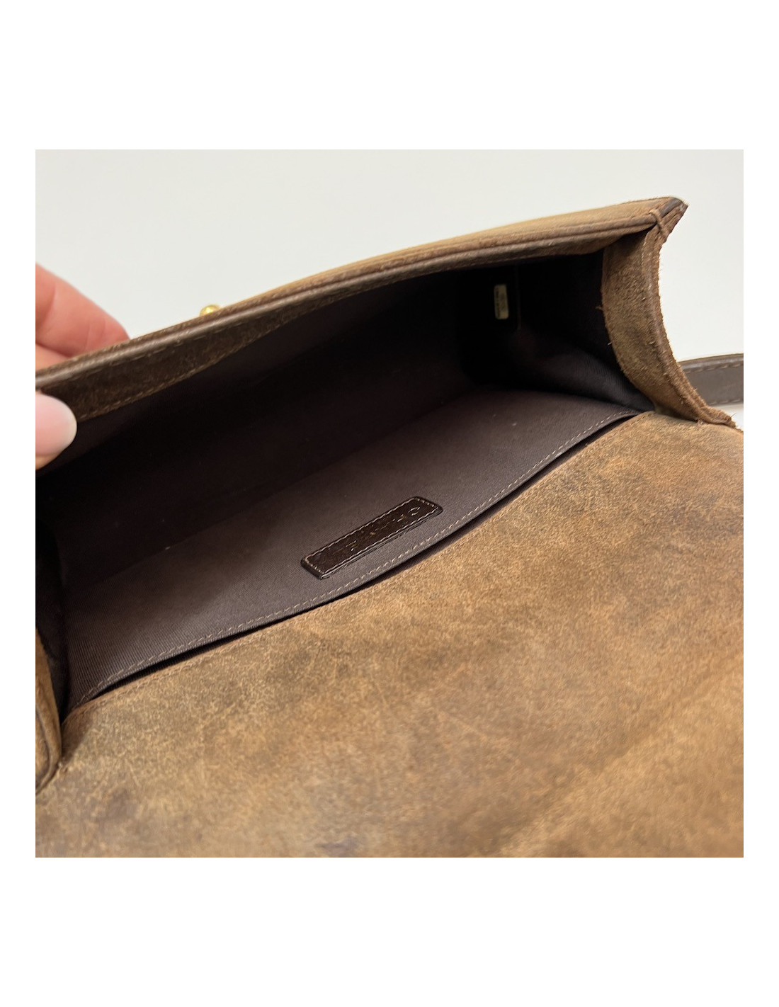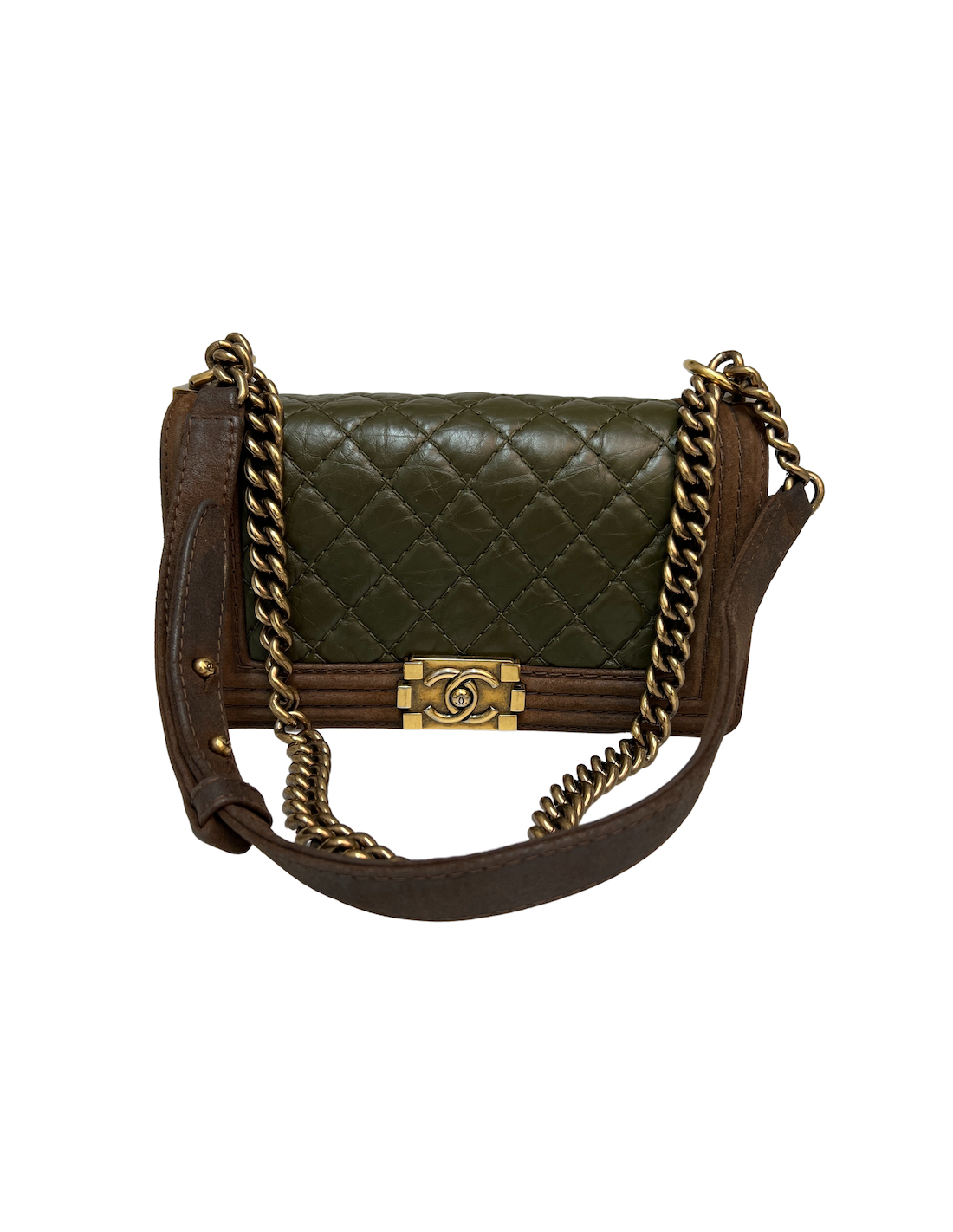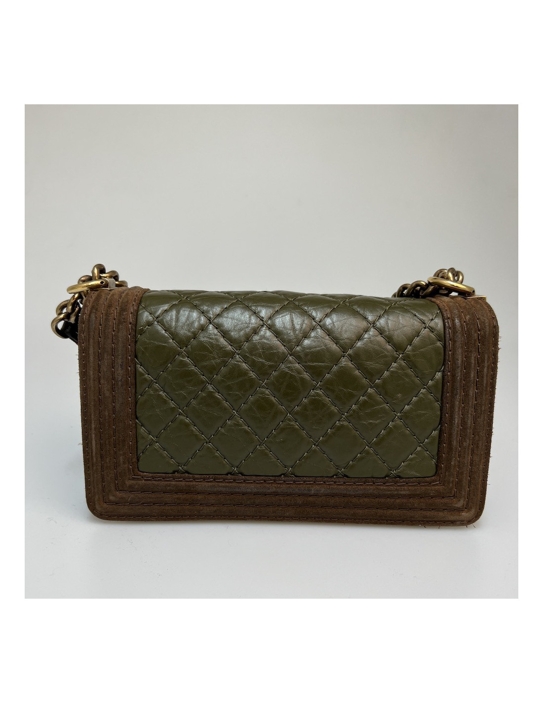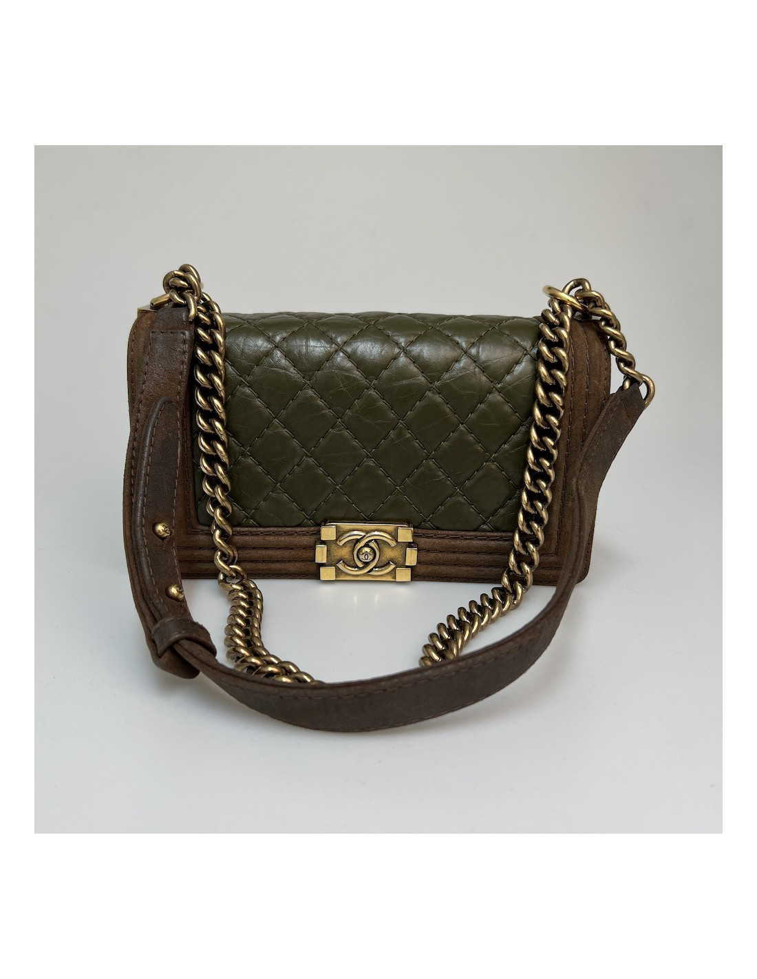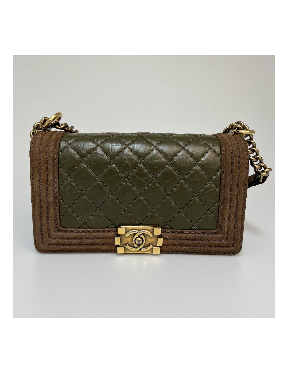 Boy CHANEL cuir bicolore kaki marron