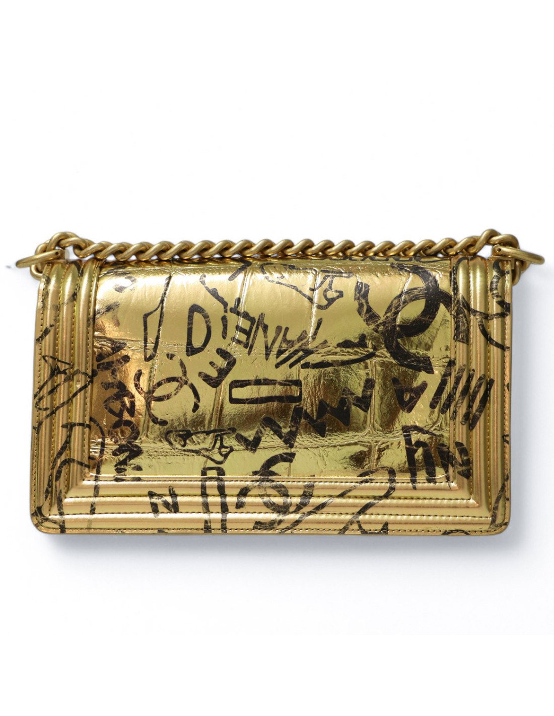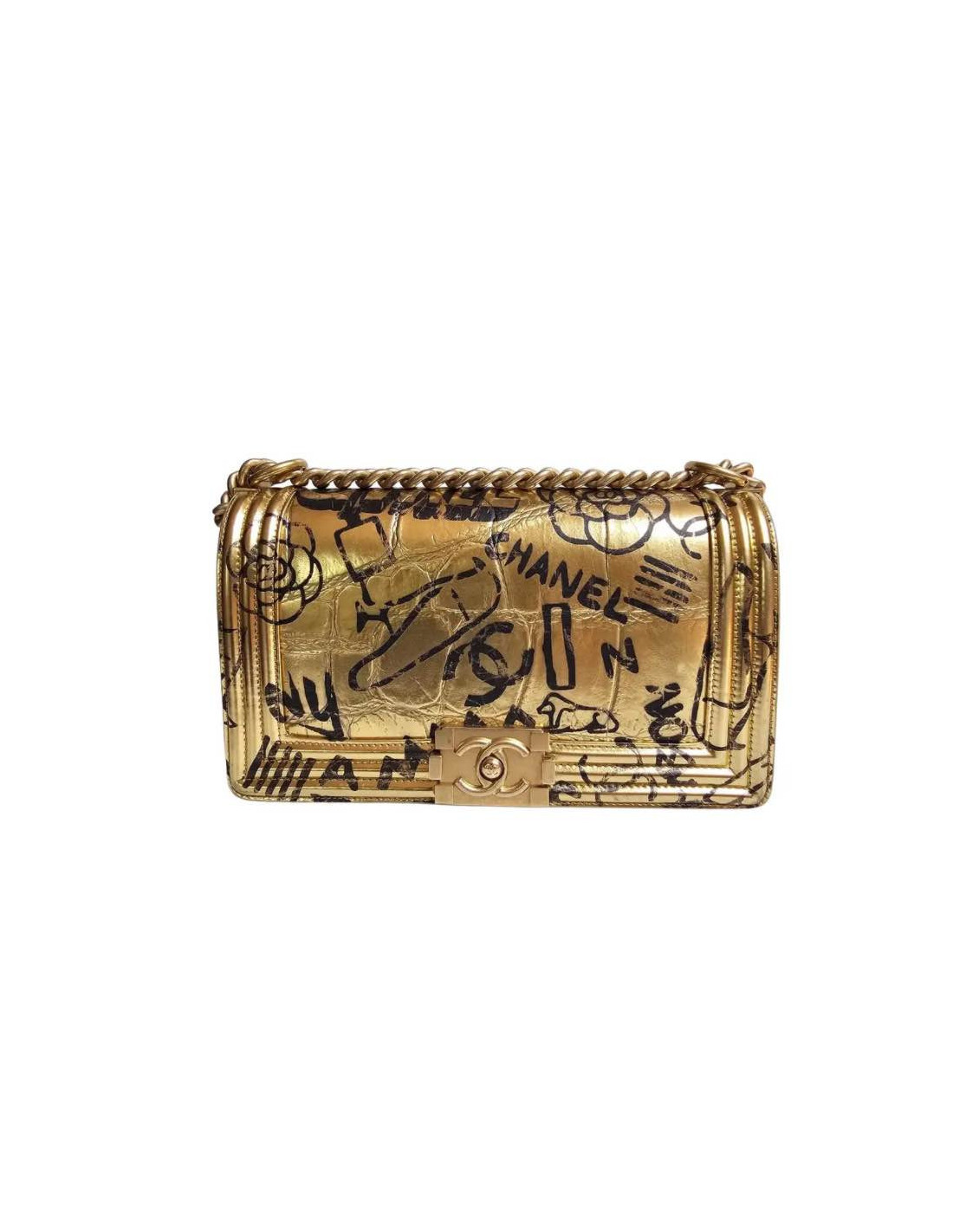 Sac Boy CHANEL Egypte doré Graffiti façon croco embossé