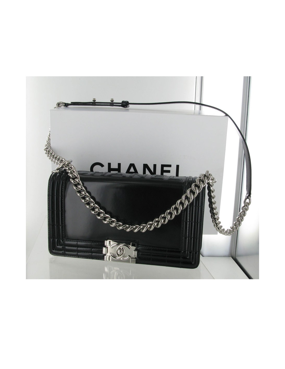 Sac Boy cuir verni noir semi mat, CHANEL. Prix Public : 2600 euros
