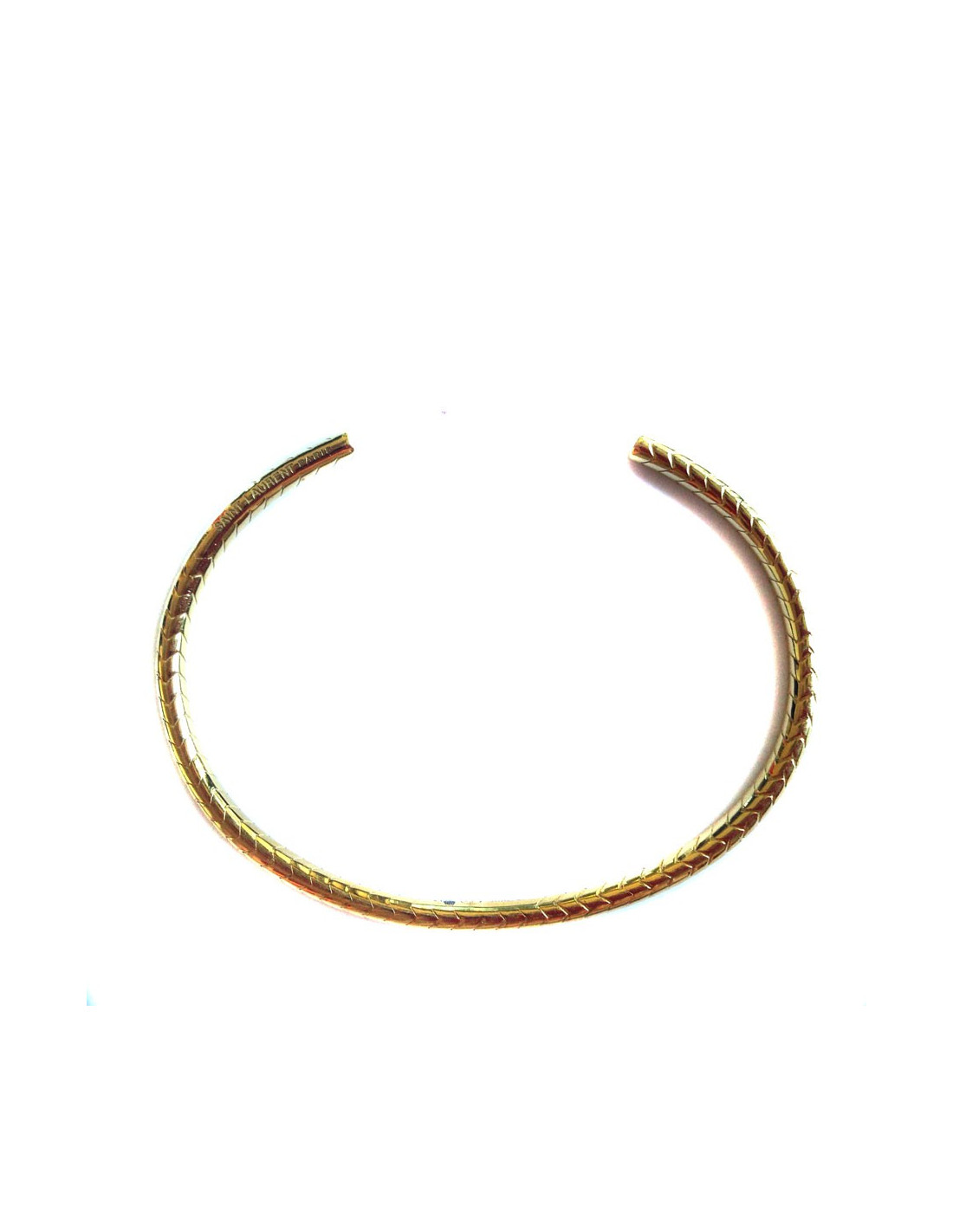 Elegant bracelet Saint Laurent en vermeil doré, unisexe, finement gravé, le jonc se glisse au poignet. Très peu porté.