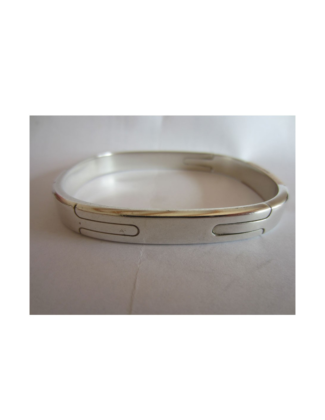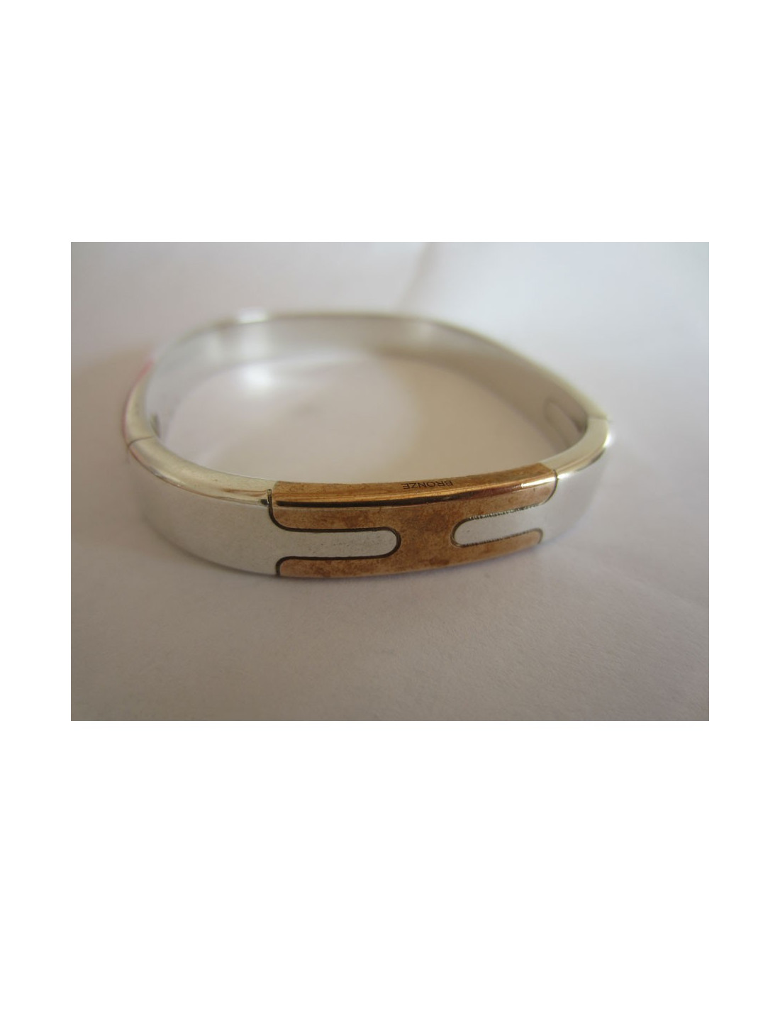 Ce bracelet a une forme ovoïdale, il possède 4 motifs "H" dont l'un en bronze, tout le reste du bracelet est en argent massif.article provenant des soldes