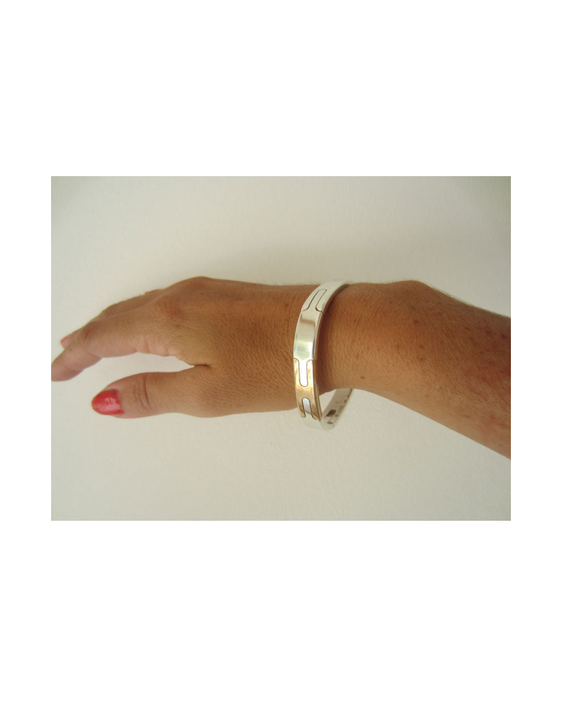 Superbe et rare bracelet modèle "Puzzle" en argent massif (Ag 925) et bronze (juste un H en bronze voir photo).