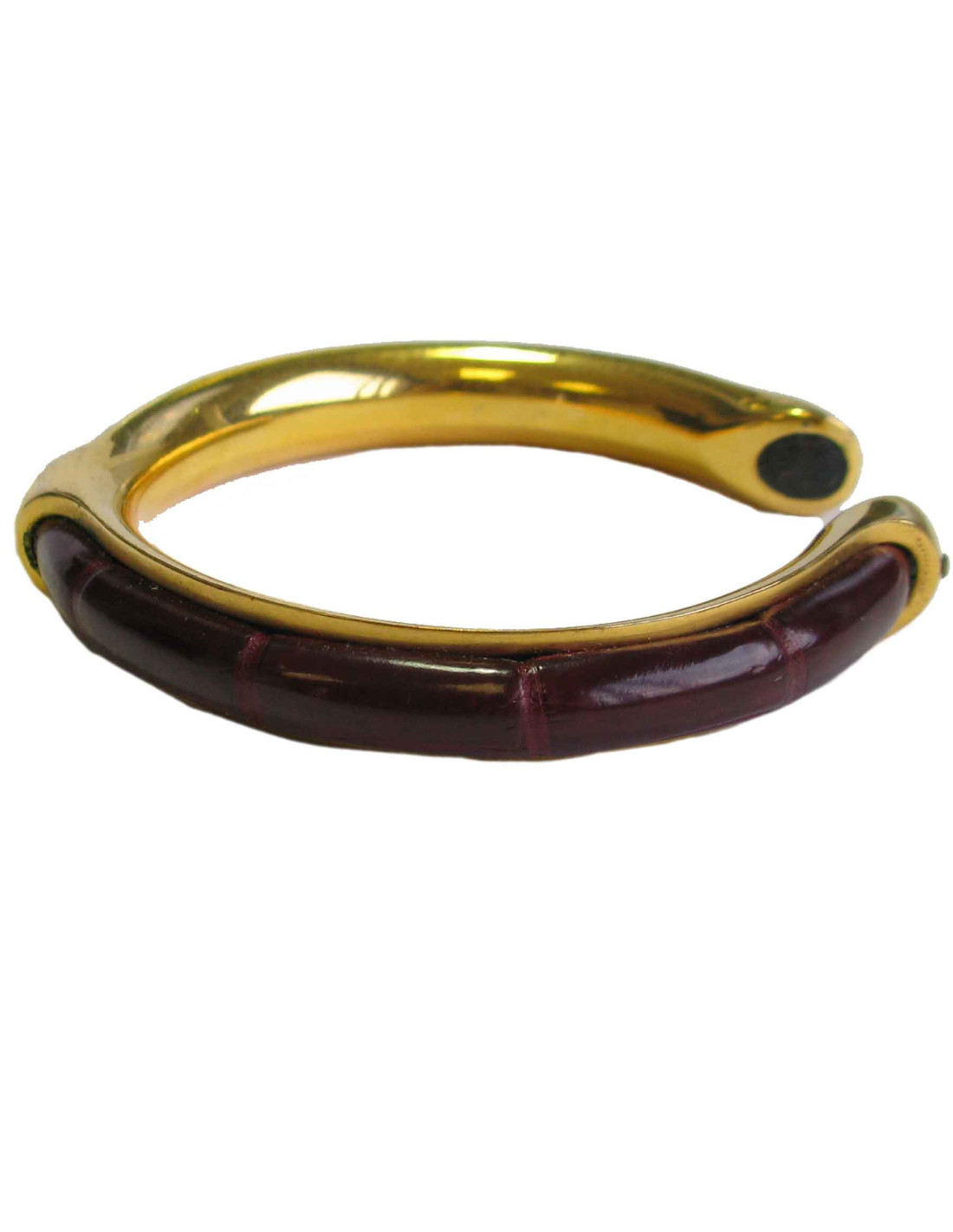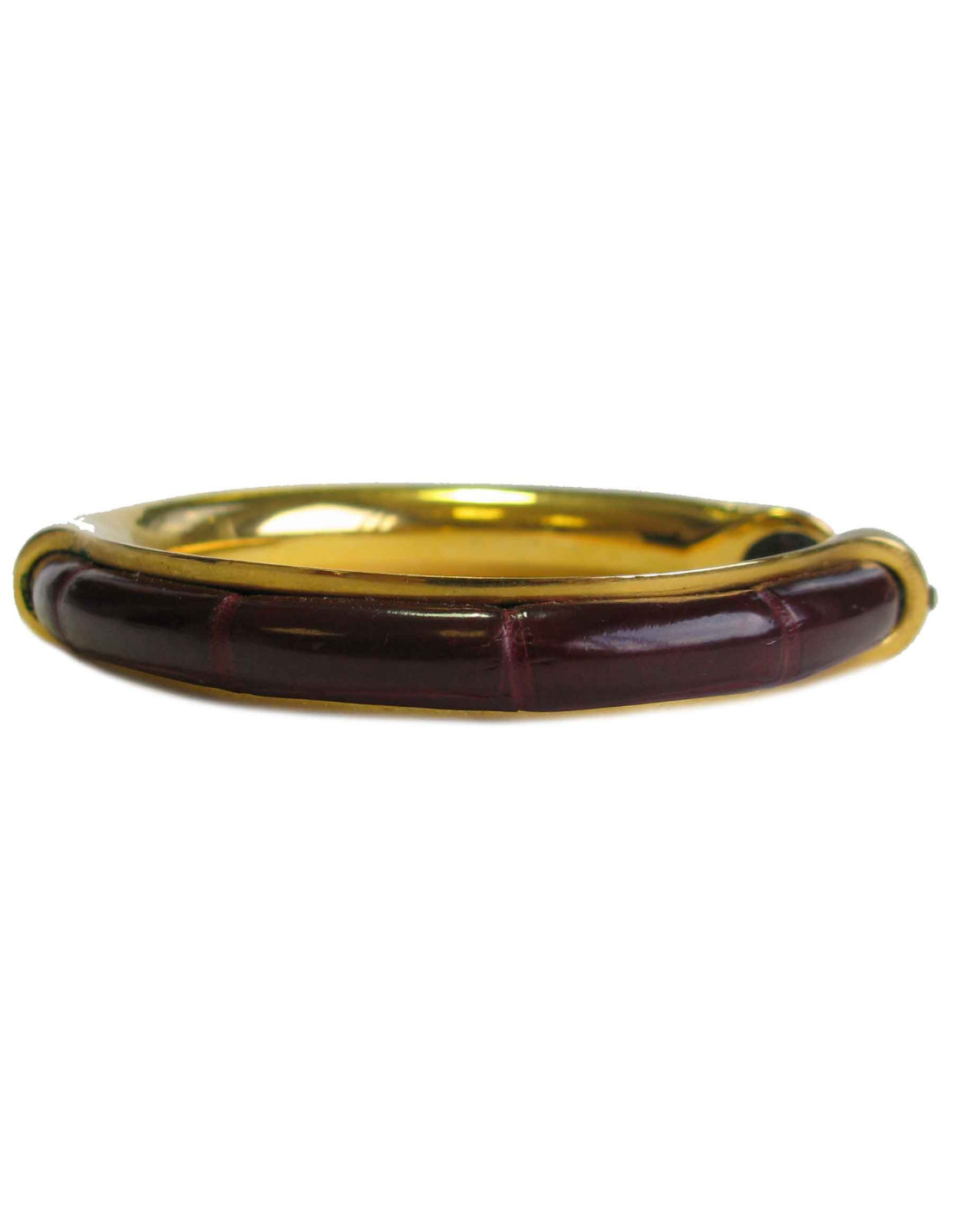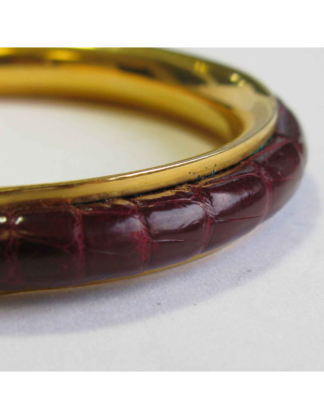 Bracelet Hermès en plaqué or et cuir croco rouge H.
