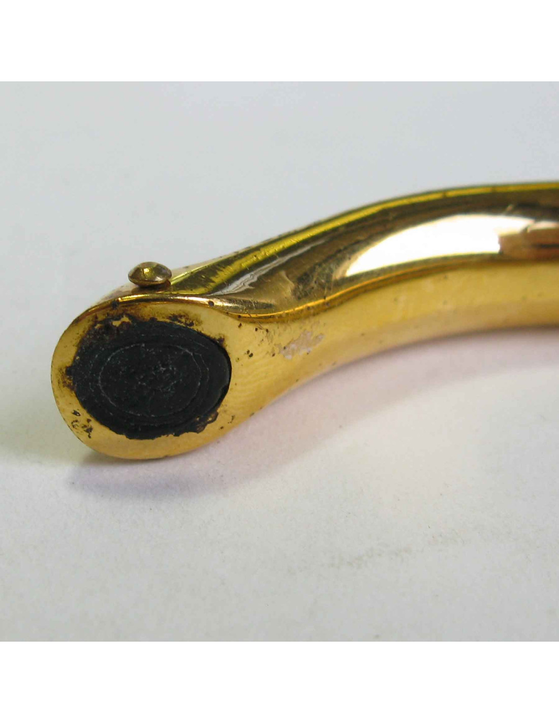 Bijou vintage en bon état. Le cuir est impeccable, le plaqué or présente des micro rayures d'usage et est piqué par endroit (voir photo).