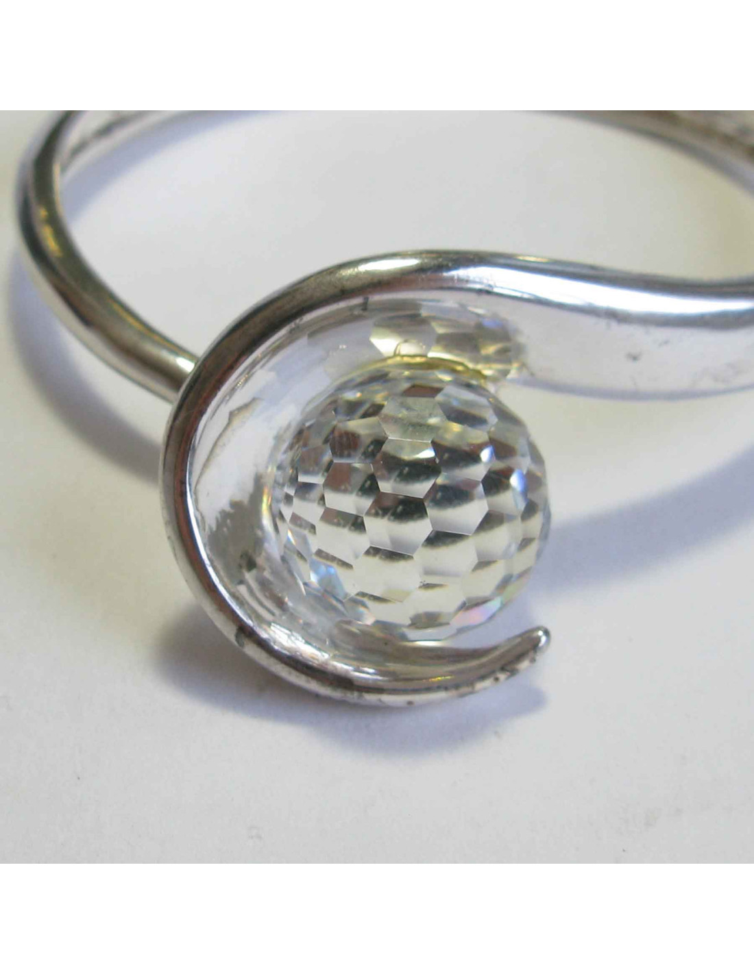 Bracelet rigide non signé en métal argenté et boule facettée Swarovski.