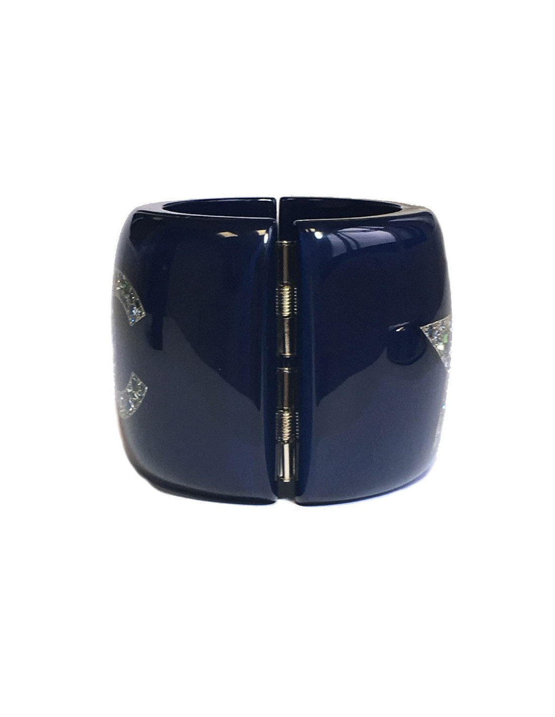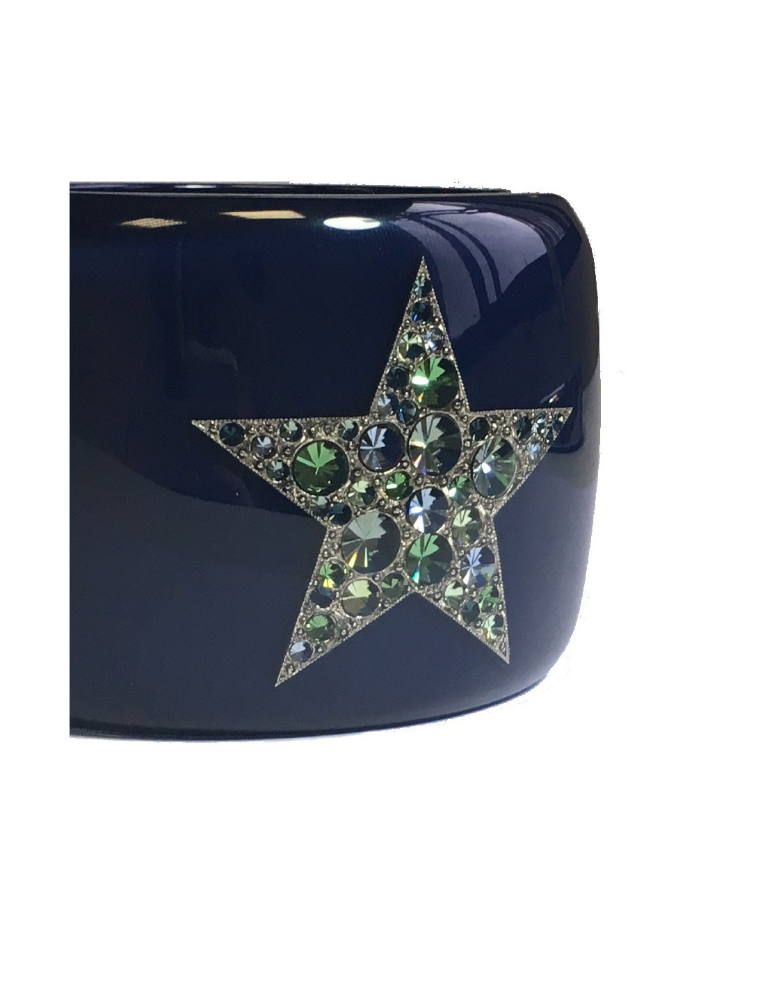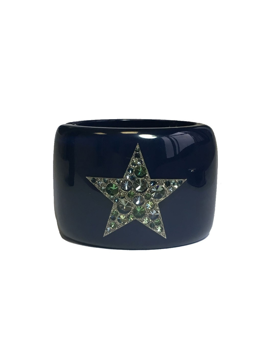 Manchette CHANEL en résine bleu laqué, CC et étoile avec inclusions de strass