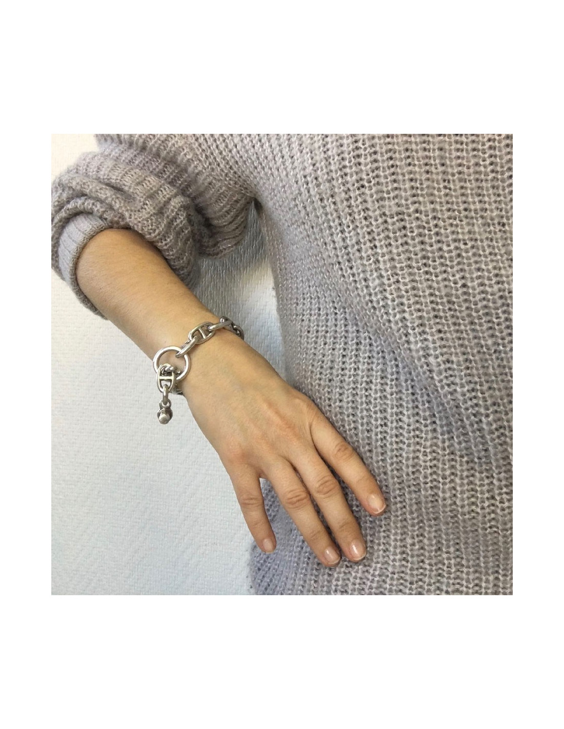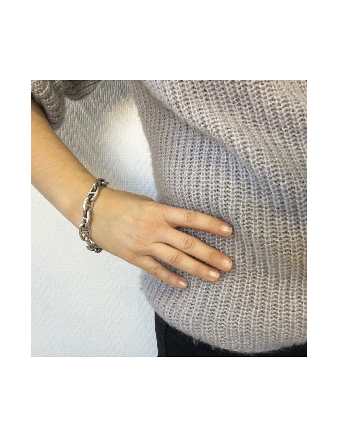 Fermoir en T. En très bon état. Quelques micro rayures sur l'ensemble. Argent 925. Fabrication française. Dimensions : longueur totale : 21,5 cm Porté : 21 cm largeur d'un maillon : 1,2 cm