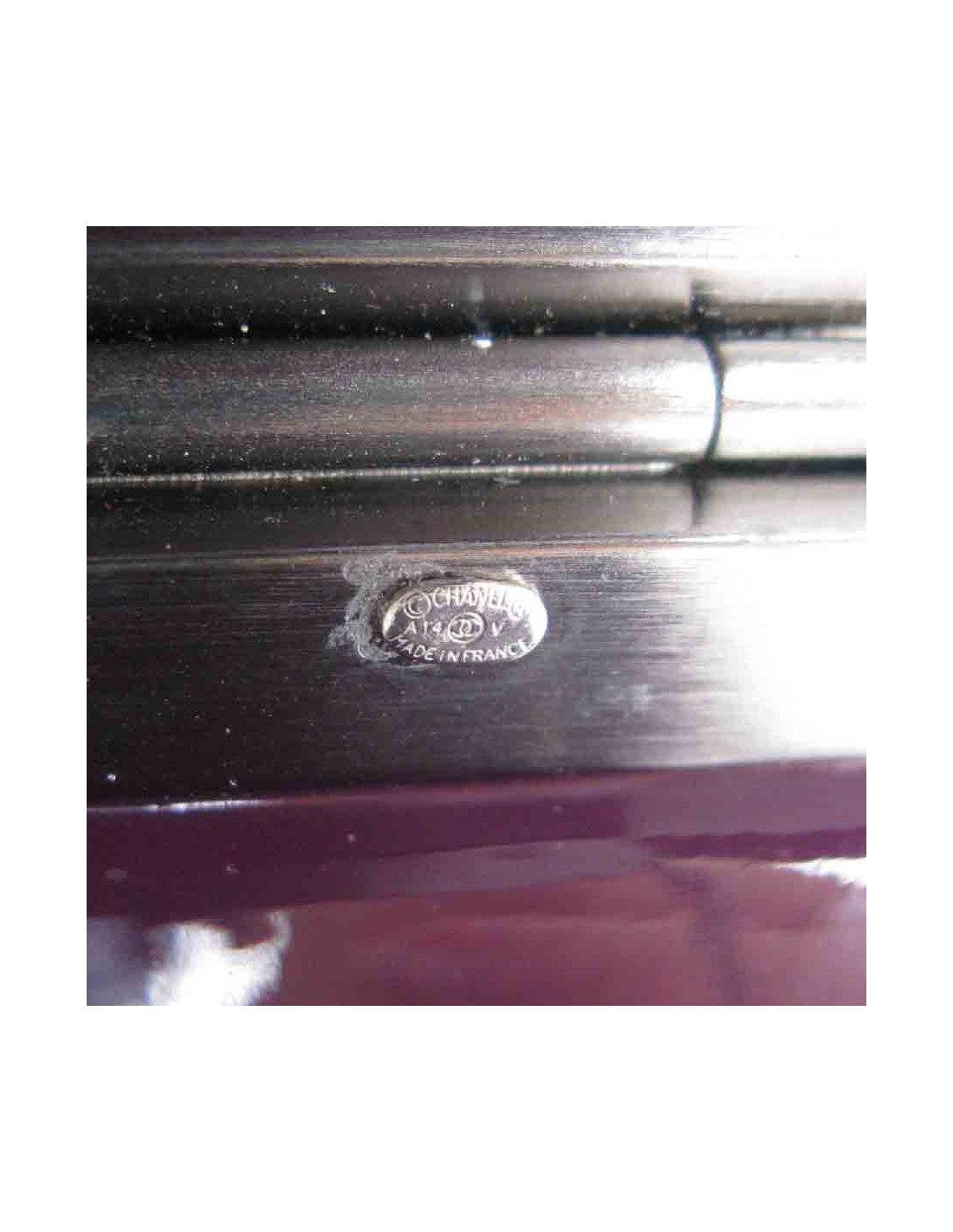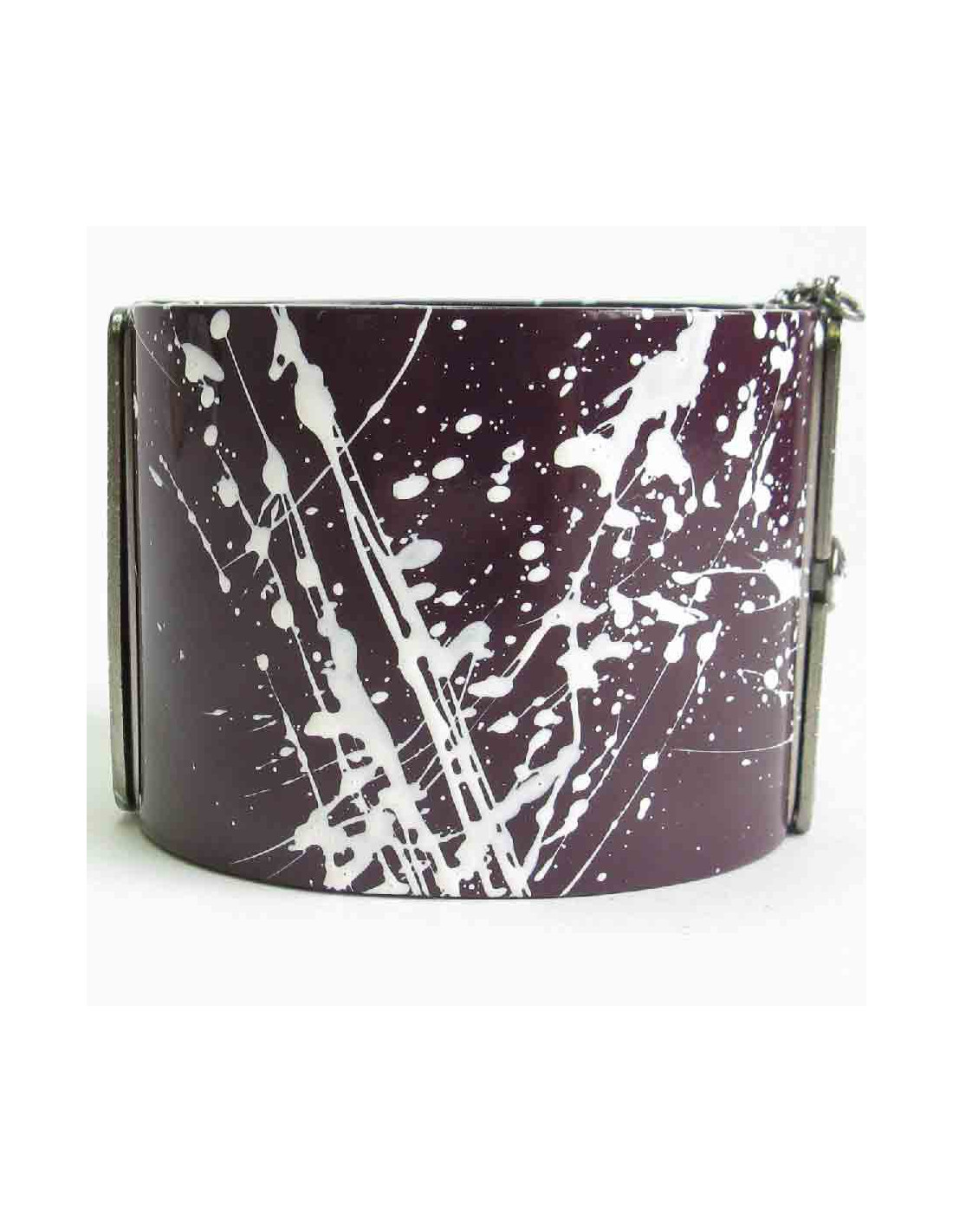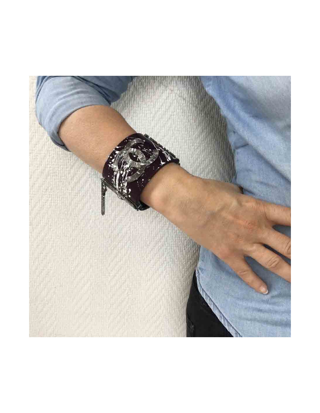 Très belle manchette Chanel graffitis en résine violette et bijouterie argentée.