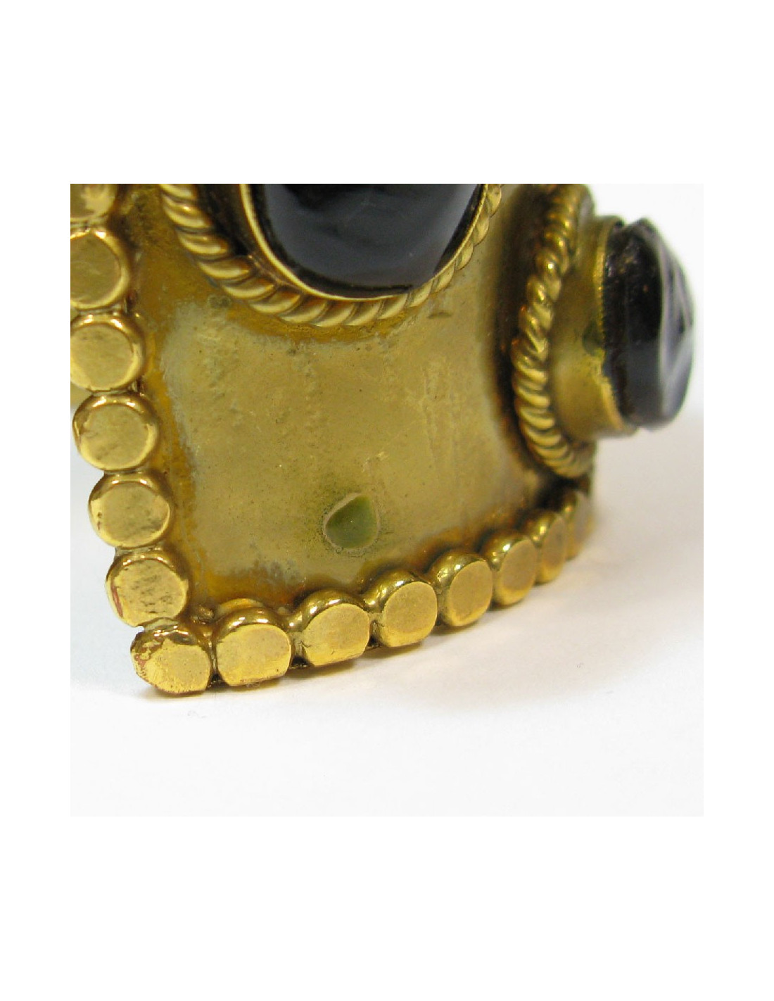 Manchette couture Marguerite de Valois en métal doré or vieilli incrusté de cabochons en pâte de verre ivoire et ambre foncé.
