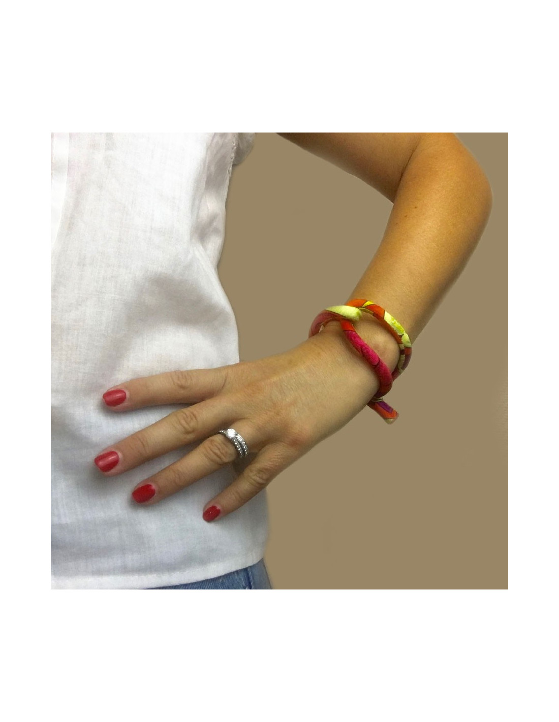 Bracelet HERMES Petit H en soie multicolore